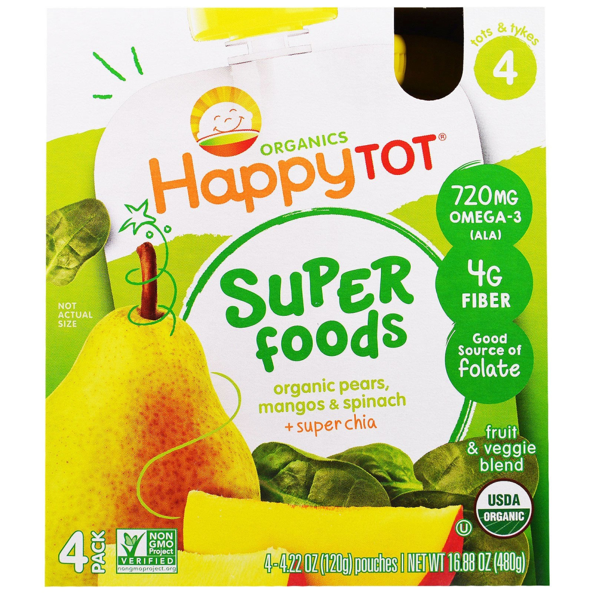 Nurture Inc. (Happy Baby) HappyTot Super Foods Pears Mango & Spinach + Super Chia Stage 4 4 Pack 4.22 oz (120 g) Each