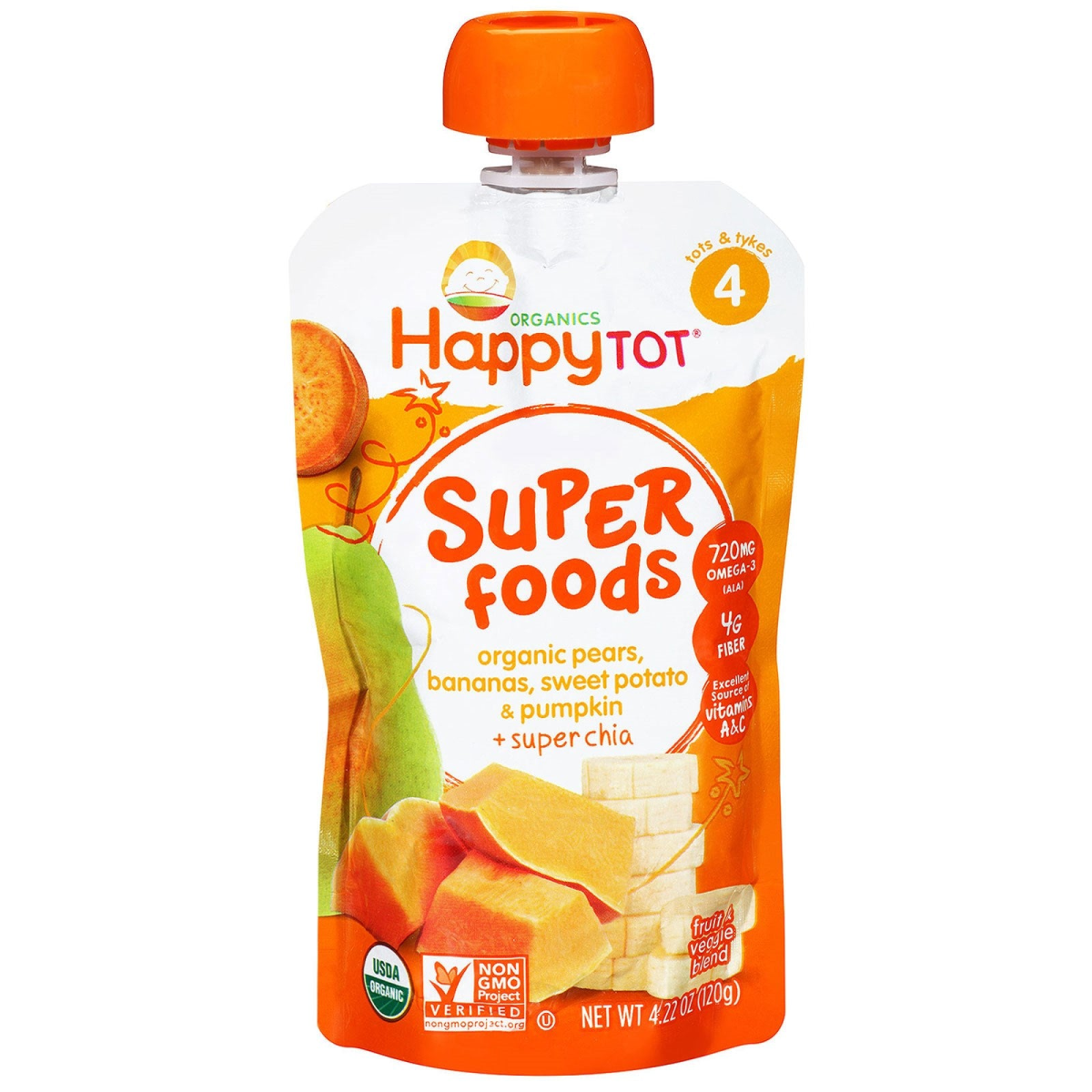 Nurture Inc. (Happy Baby) Happytot Superfoods Pears Bananas Sweet Potato & Pumpkin + Superchia 4.22 oz (120 g)