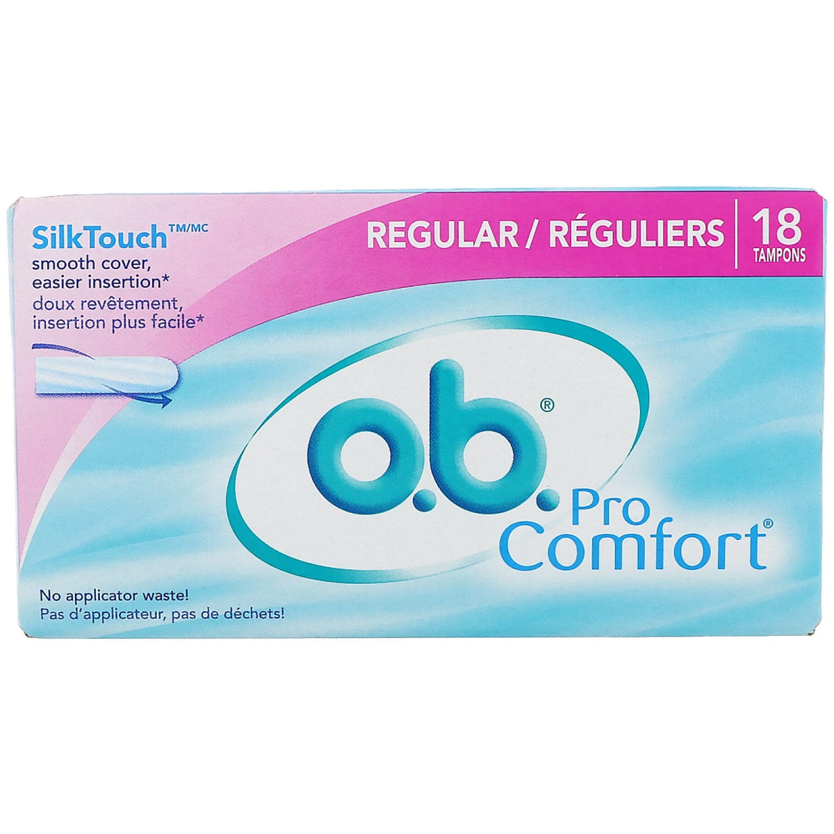 SilkTouch Smooth Cover, Easier Insertion* No Applicator Waste! Noticeably Easier to Insert and Remove* Fluid-Lock Grooves for Locked Protection SilkTouch- Cover for Smooth Insertion and Removal The only one with SilkTouch cover for ultimate comfort for protection Absorbency: All tampons are designated by absorbency. The absorbency ratings are standard among all manufacturers so you can compare them among brands. All regular absorbency tampons absorb the same amount (6-9 grams). To reduce your risk of getting mestrual TSS, select the lowest absorbency to meet your needs. *Vs o.b. Regular