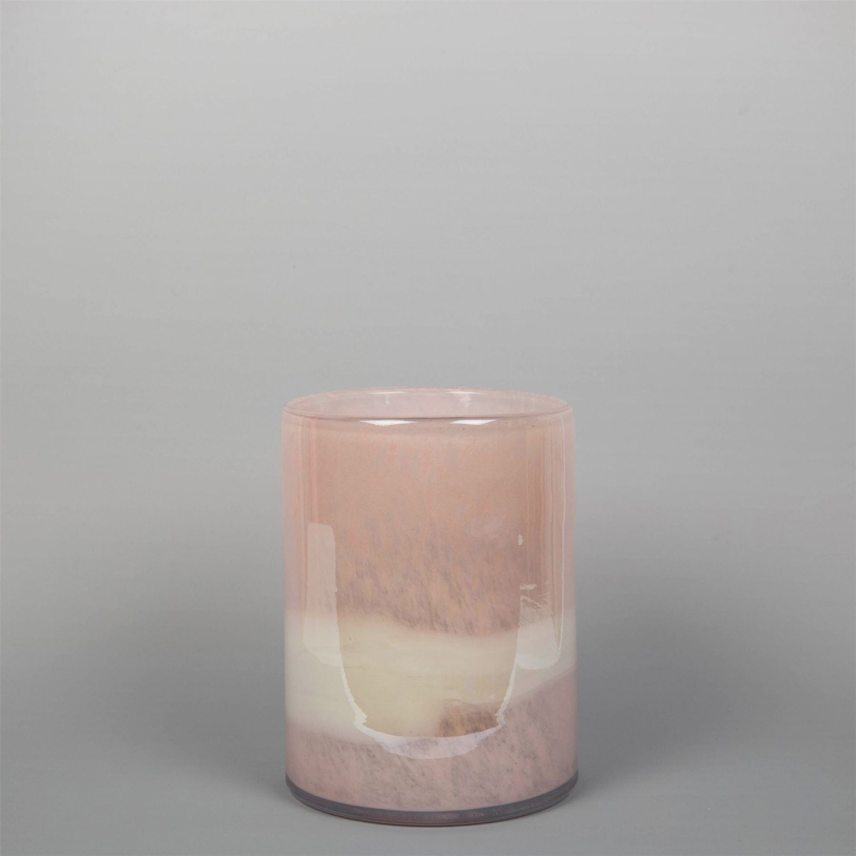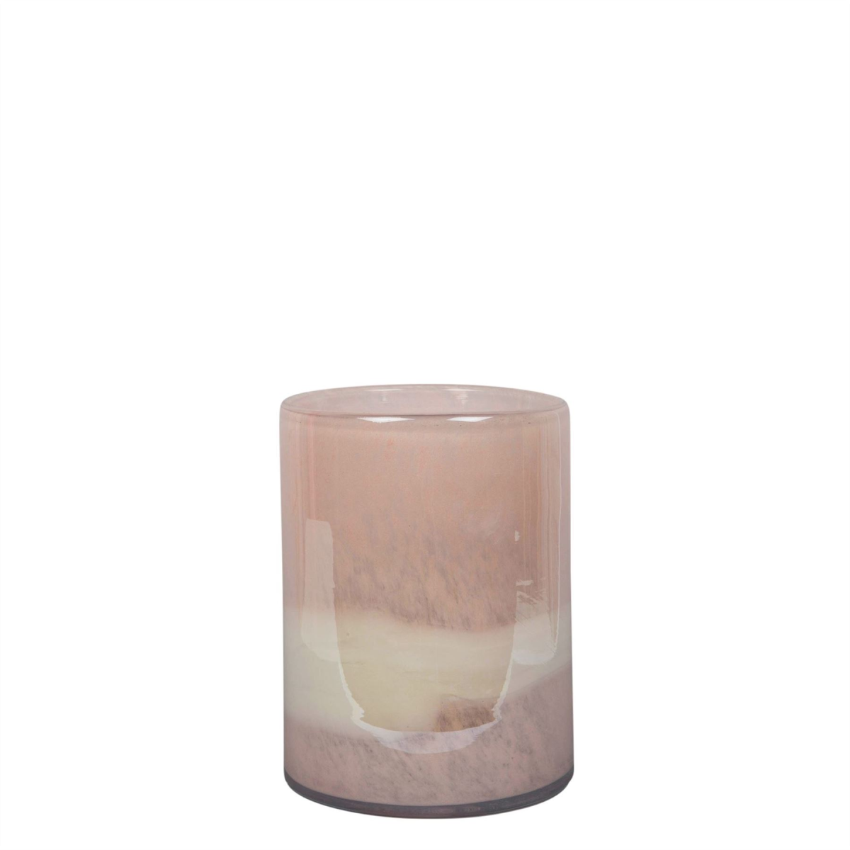 A beautiful handmade blush pink and cream glass vase. From Objets d'Art by SOPHIA� - hand blown and one hundred percent unique. Details: - H:16cm x W:12cm x D:12cm - Blush pink & cream striped design - Cylindrical shape - Hand blown glass vase with unique colour patterns - Perfect for flowers or as a standalone decorative piece