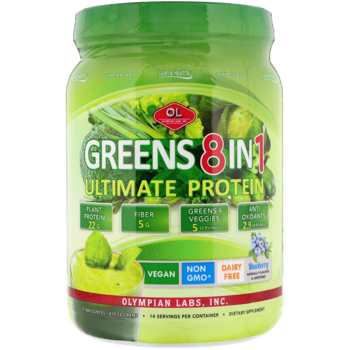 Lean & Healthy Plant Protein 22 g Fiber 5 g Greens & Veggies‡ - 5 Servings Antioxidants§ - 2.9 Servings Vegan Non GMO^ Dairy Free Naturally Flavored & Sweetened 14 Servings Per Container Dietary Supplement Allergen Free Gluten Free Greens 8 in 1 Ultimate Protein is a delicious, nutrient-rich, complete greens drink mix that combines a blend of 8 products into 1 convenient serving. Enjoy the benefits of 8 products in 1: Protein - maximized in this triple-blend of plant based proteins (Rice, Organic Pea & Organic Hemp) are essential nutrients which support your optimal health. Protein also plays a key role in increasing strength and lean muscle mass, supporting a normal glucose metabolism & providing your body with the energy it needs. Fiber - helps regulate the body's use of sugars, helping to keep hunger and blood sugar in check. Antioxidants - found in fruits and vegetables are your best defense against the damaging effects of free radicals on your cells. Antioxidants boost your overall health, brain health, immune system as well as provide anti-aging benefits & help to maintain healthy skin. We measure antioxidants with the Oxygen Radical Absorbance Capacity (ORAC) lab test. Whole Food Multivitamins & Minerals - support your overall health with the nutrients your body needs. Branch Chain Amino Acids (BCAA's) - are essential for assembling proteins in your body. They also aid in muscle growth and fat loss. Digestive Enzymes - promote optimal digestion for better absorption & greater bioavailability. Probiotics - are friendly bacteria that play an important role in digestion, restoring a healthy intestinal balance, proper metabolism, a healthy colon environment & overall health. Gentle Detoxification & Cleansing - provides amino acids & herbal detoxifiers that help maintain healthy blood & aid in the removal of destructive toxins, such as heavy metals & pollutants. ^We do not use ingredients that were produced using modern biotechnology. ‡Same as 5 servings of broccoli. §Same as 2.9 servings of blueberries.