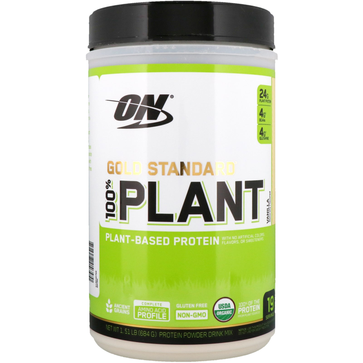 Great Taste Amazing Flavor 24 g Plant Protein 4 g†BCAAs 4 g†Glutamine 100% Plant Naturally Flavored With No Artificial Colors, Flavors, or Sweeteners Ancient Grains Complete Amino Acid Profile Gluten Free Non-GMO USDA Organic 100% of the Protein From Plant Sources 19 Servings Protein Powder Drink Mix Certified Organic by QAI Vegan Informed-Choice.org Trusted by Sport The True Strength of Plant Protein Gold Standard 100% Plant Protein was made for active adults who care about what they eat and where there nutrients come from. By combining organic pea, brown rice and sacha inchi proteins, you benefit from a complete profile of essential amino acids to support muscle recovery. Along with 24 grams of protein, each serving delivers 100% of the Daily Value of vitamin C, provides an excellent source of vitamin B12 and includes a gluten-free complex of ancient grains and pomegranate powder. Help keep your goals and your diet on track with this USDA Certified Organic, non-GMO formula that's free of artificial color, flavors and sweeteners. Beyond The Basics 24 Grams of Organic Plant Protein per Serving Complete Profile of Essential Amino Acids 100% of the Daily Value of Vitamin C for antioxidant and joint support Excellent Source of Vitamin B12 Ancient Grain Complex of Amaranth, Quinoa, Buckwheat, Millet and Chia Organic Pomegranate Powder USDA Organic, Non-GMO & Gluten Free No Artificial Colors, Flavor or Sweeteners Informed-Choice.ORG Trusted by Sport Informed Choice is a quality assurance program for sports nutrition products. The program certifies that nutritional supplements that bear the Informed Choice logo have been tested for banned substances by the world class sports anti-doping lab LGC Limited. †Naturally Occurring