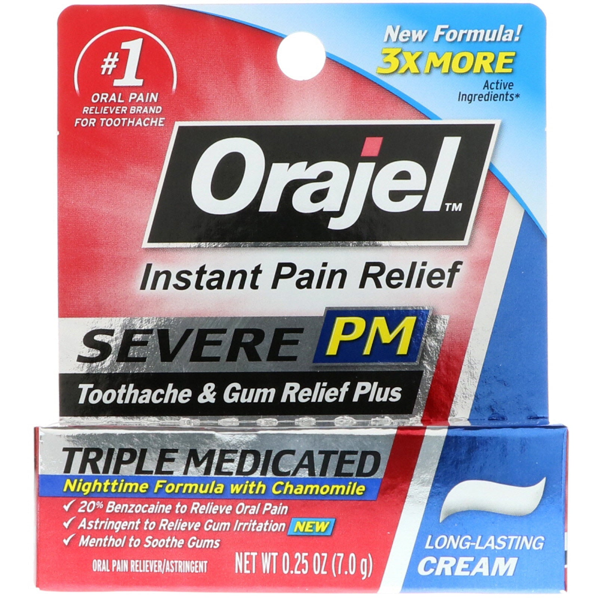 Orajel, Severe PM, Toothache & Gum Relief Plus, Triple Medicated Cream, 0.25 oz (7.0 g)
