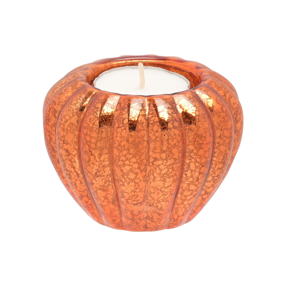 With a antiqued crackle finish, these glass pupkin shaped tealight holders will make a fine addition to any autumnal display and perfect for Halloween.