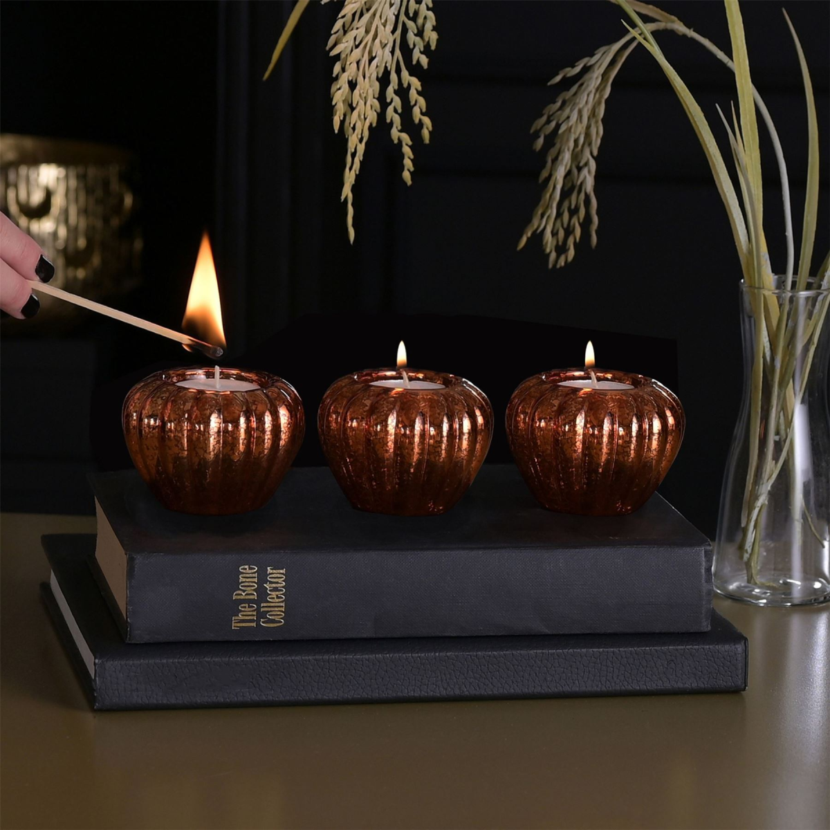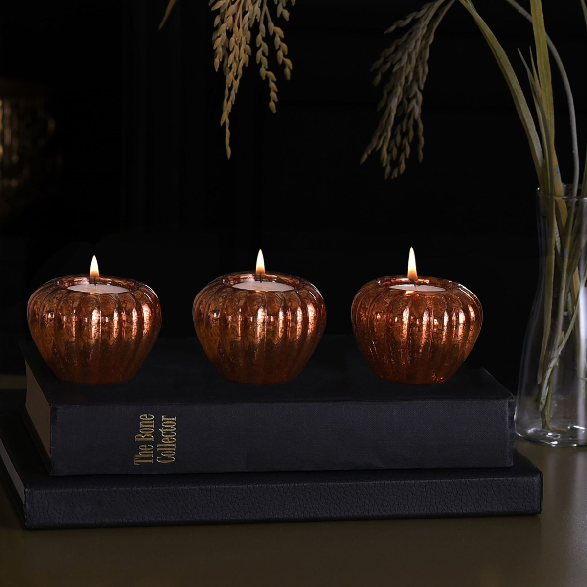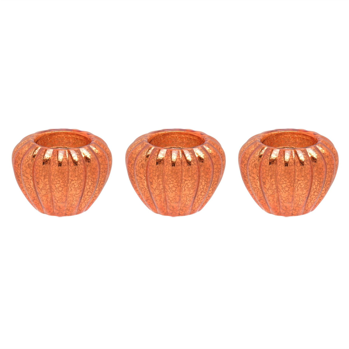 Set of 3 Orange Pumpkin Glass Tealight Holders by HOCUS POCUS NOVELTIES�.