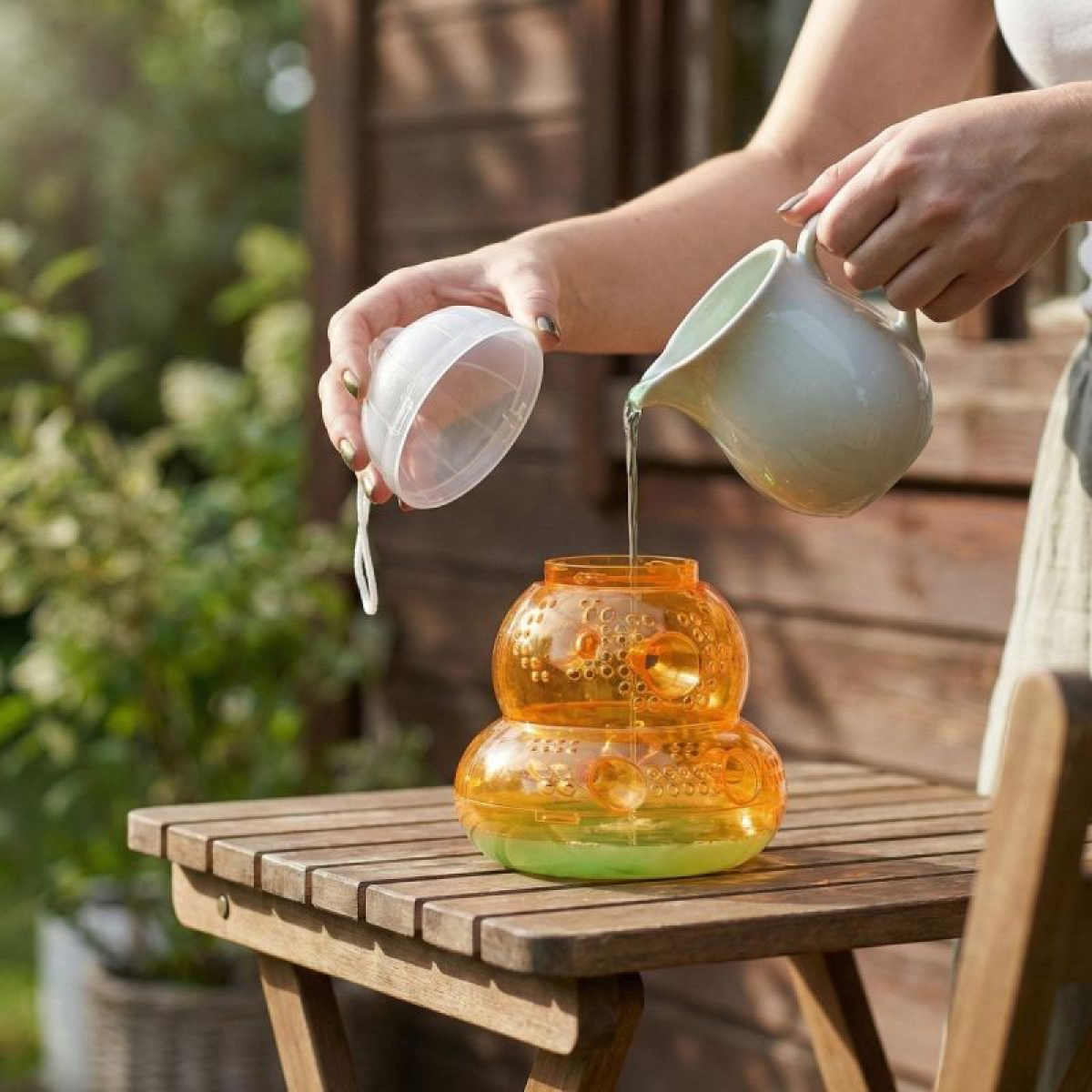 The 15CM ORANGE WASP TRAP helps reduce the presence of wasps in areas where food is consumed and where children and pets are present. It's a safe, ecological, and convenient solution that works without the use of insecticides.
