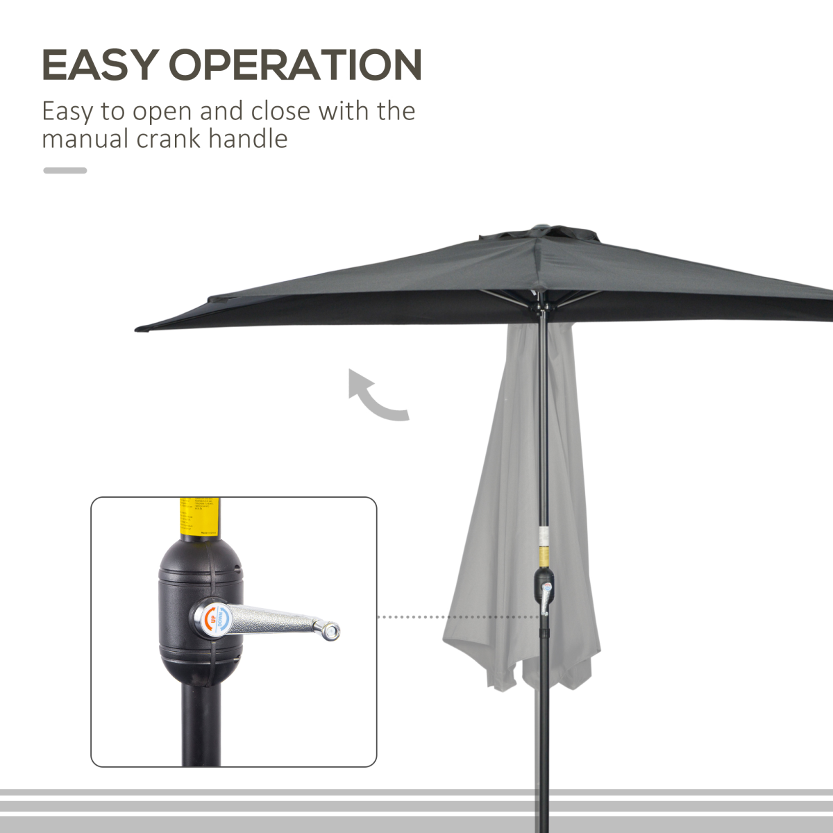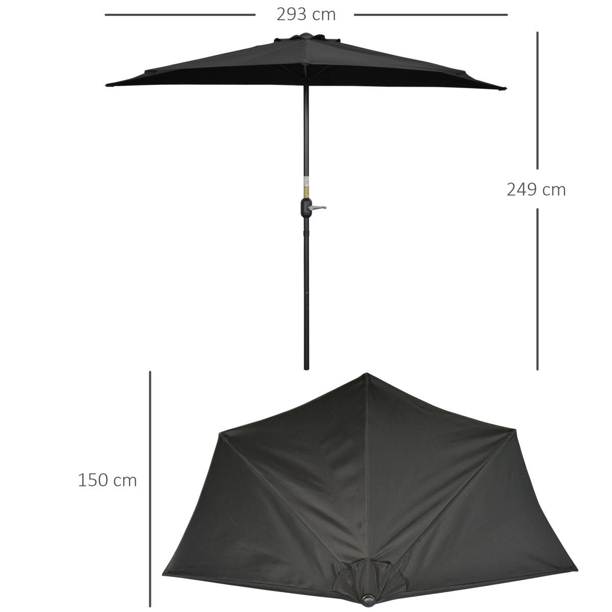 Outsunny 3(m) Half Round Parasol Garden Sun Umbrella Metal w/ Crank Black