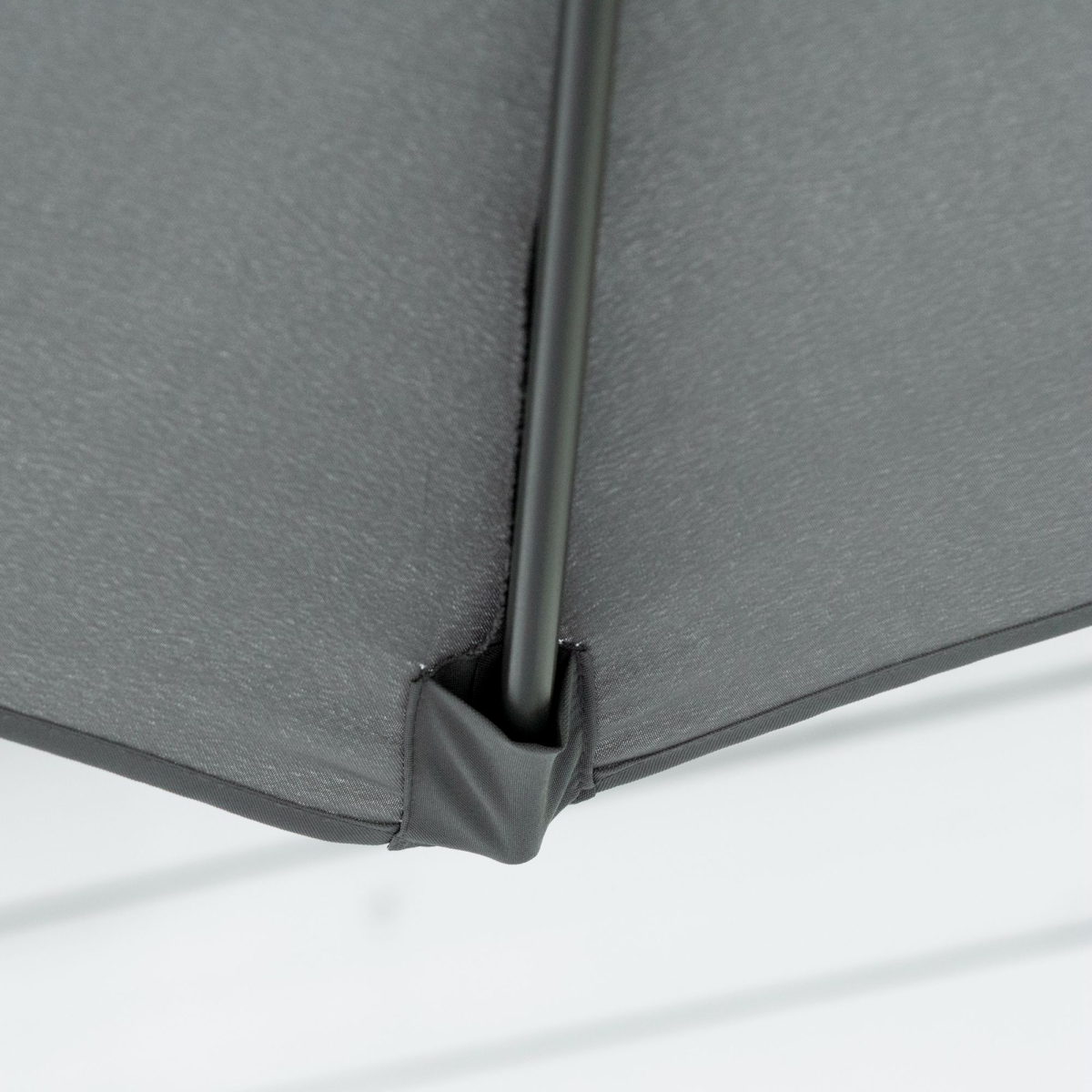 - Metal pole: The hanging parasol stands steady in place due to its strong metal pole. It has six metal ribs connecting to the canopy.