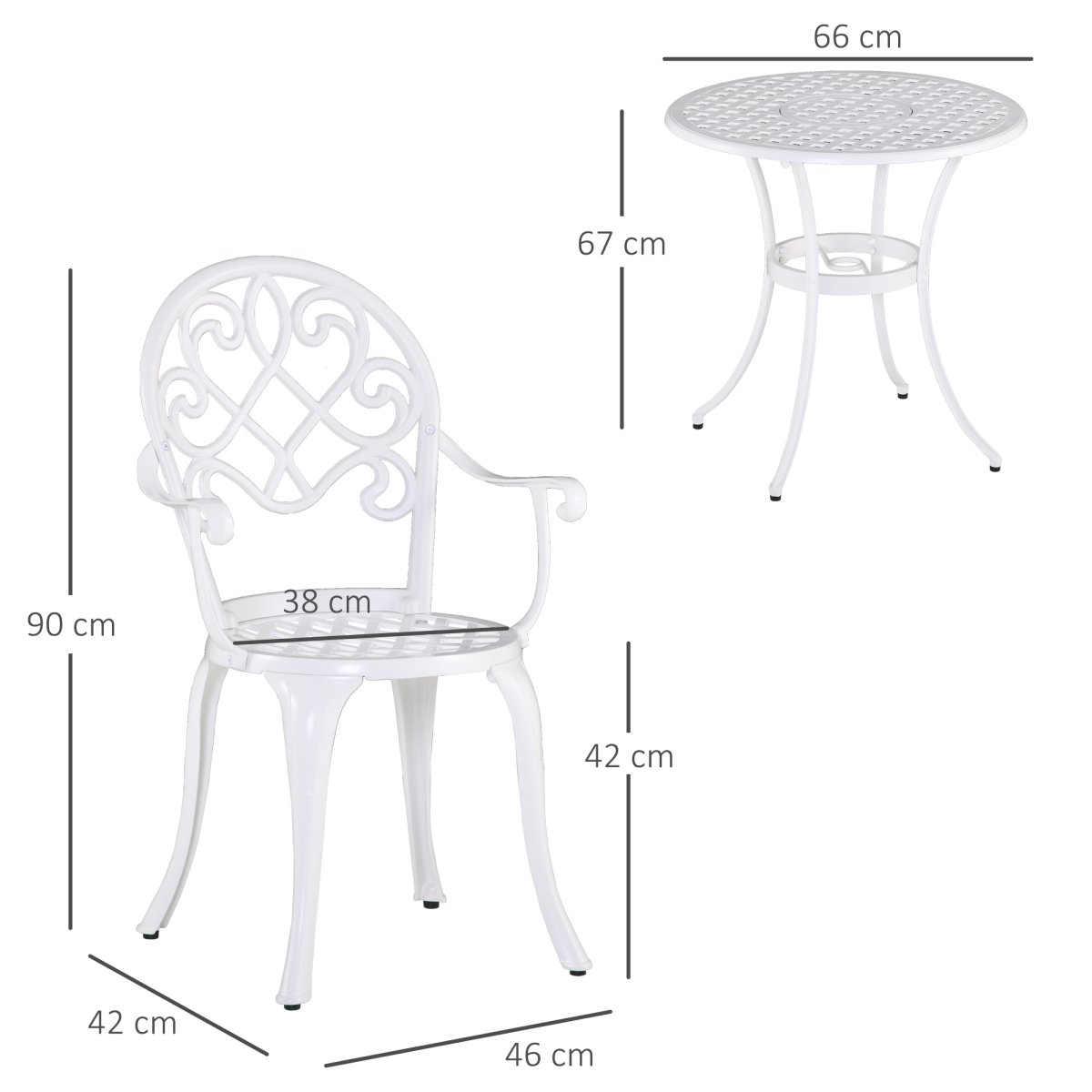 Outsunny 3PCs Garden Bistro Set Cast Aluminium Round Table with 2 Chairs White