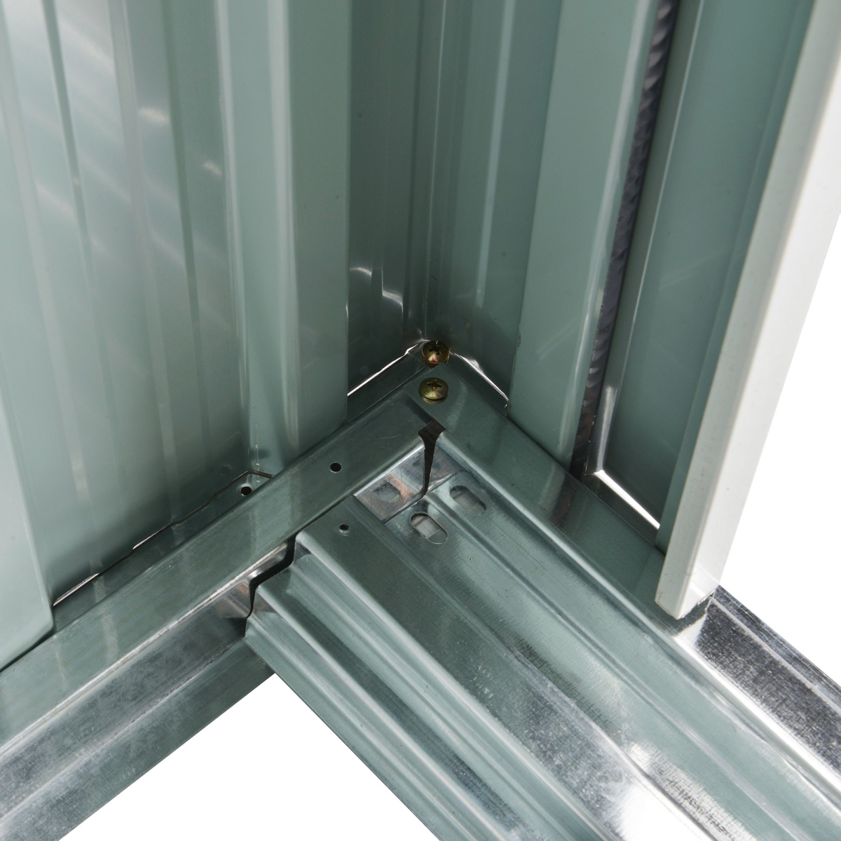 Ample storage space: The lean to shed provides enough storage space for garden tools, equipment and other outdoor equipment.Premium material: Made with high quality galvanized color steel, this garden shed ensures strength and durability for long-lasting use.Sliding door design: The single sliding door is convenient for access in and out, it will be easier to get tools from the metal garden shed.Simple and elegant appearance: Practical outdoor storage shed with simple line and elegant appearance. Perfect for backyard, garden and other outdoor places.Dimensions: Overall Dimension: 163L x 89W x 182H cm, Inner Dimensions: 150L x 76W x 170H cm, Door Size: 61W x 165H cm.
