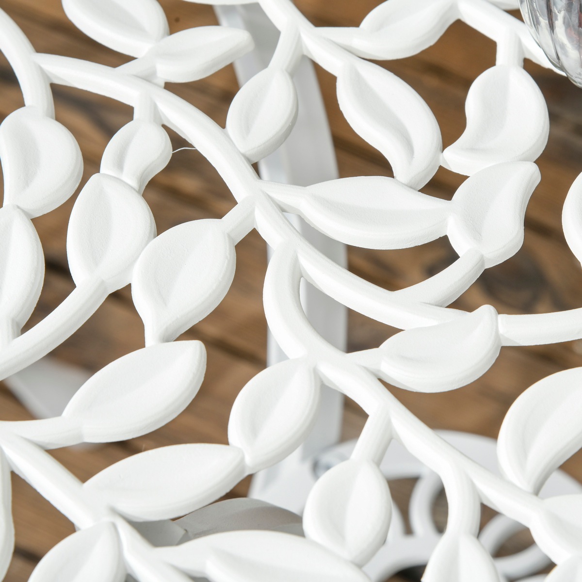 Three-piece bistro set: Comes with two chairs and matching table. Relax with company in your garden and outdoor areas.Cut-out floral design: A pretty addition, the chairs match the table. A beautiful addition to the home.Aluminium structure: Each piece in this bistro set is strong and supportive. Resistant against peeling and corrosion.Easy to clean: Simply wipe each piece of this bistro bar set with mild soap and water.Dimensions: Table: 66.5H x ?61cm. Chair: 85.5H x 45W x 42Dcm. Assembly required.