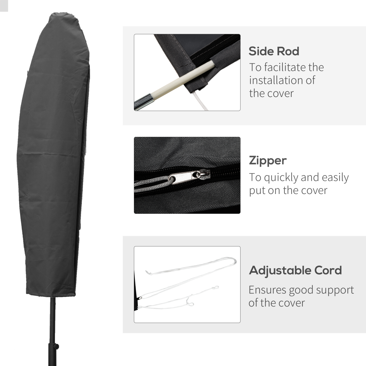 Outsunny Parasol Cover, Patio Cantilever Cover, Banana Umbrella Protector Grey