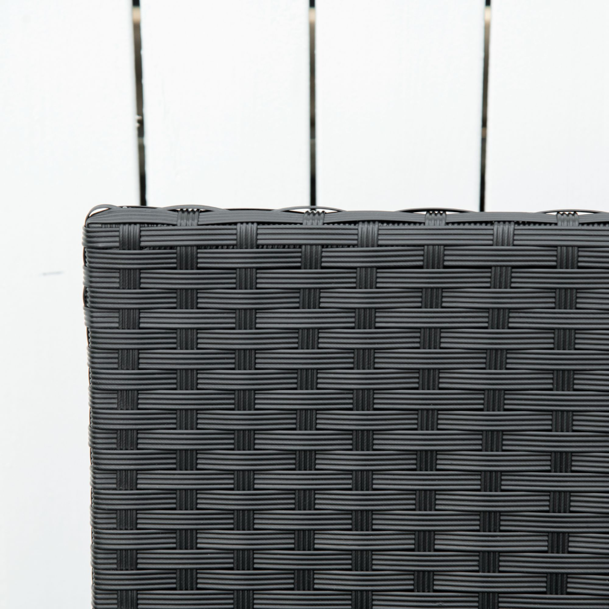 SIMPLE AND STYLISH: Black colour is welcoming and unimposing, will blend in easily with its surroundings and other outdoor furniture.METAL WRAPPED IN RATTAN: Rust-resistant frame is solid and powder coated for extra strength, with the PE wicker adding extra durability and protection against weathering.TWO-SEATER: Gives room to sit outside with a friend. Features high back and two arms for support when in use.DIMENSIONS: 122W x 60L x 87Hcm. Seat: 115W x 52Dcm.MAXIMUM LOAD 320KG. ASSEMBLY REQUIRED.