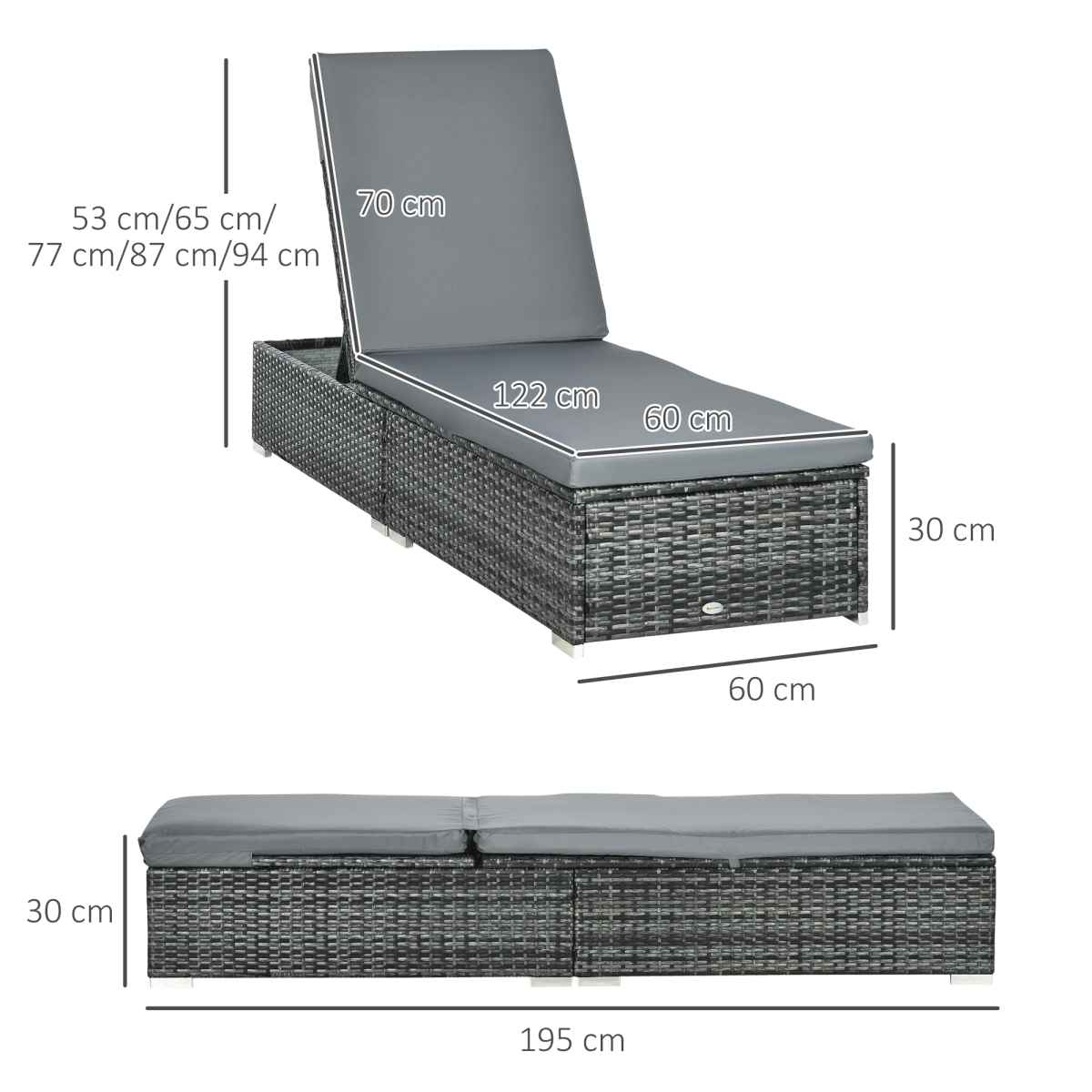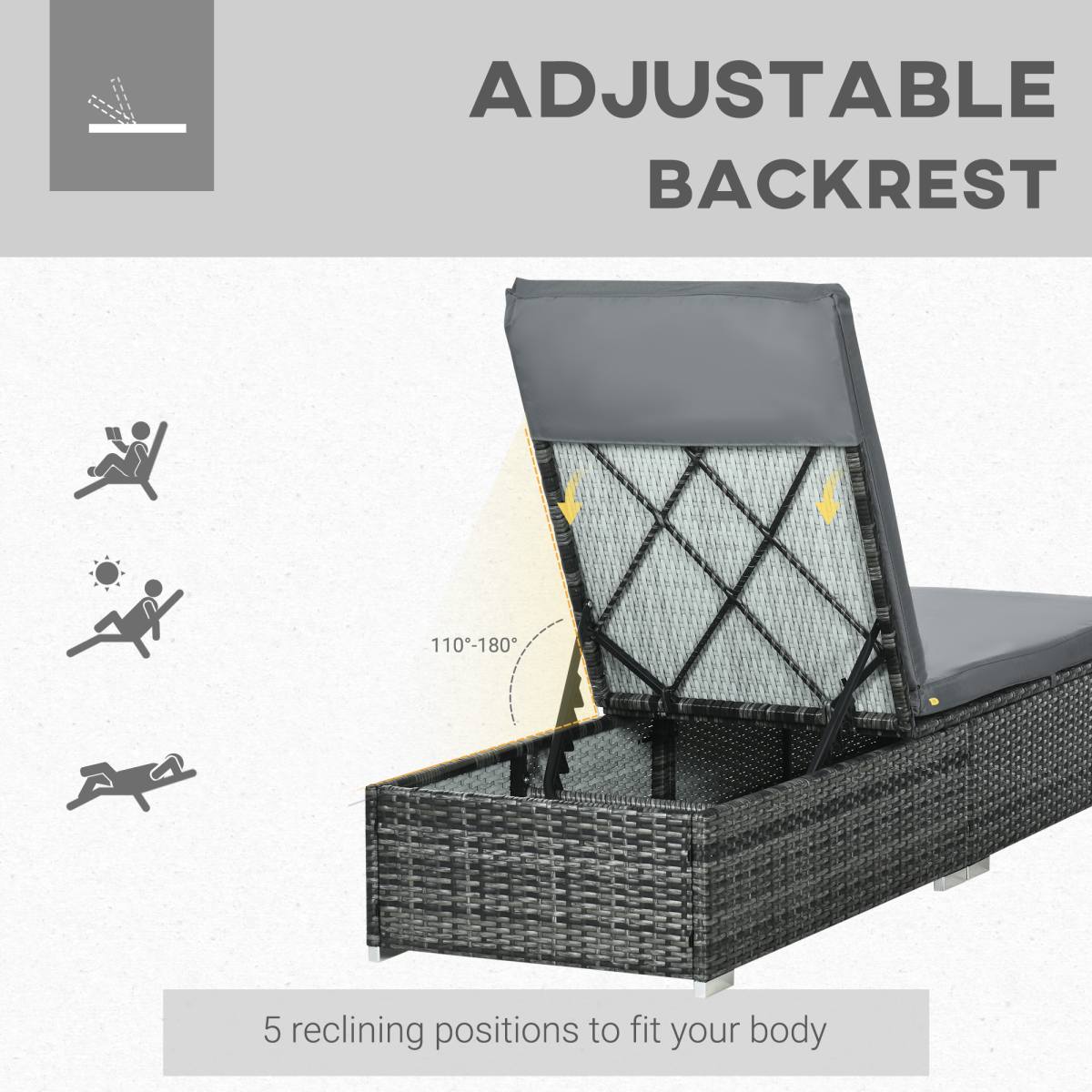 Outsunny Patio Rattan Chaise Lounge Garden Pool Wicker Sun Lounger Adjustable