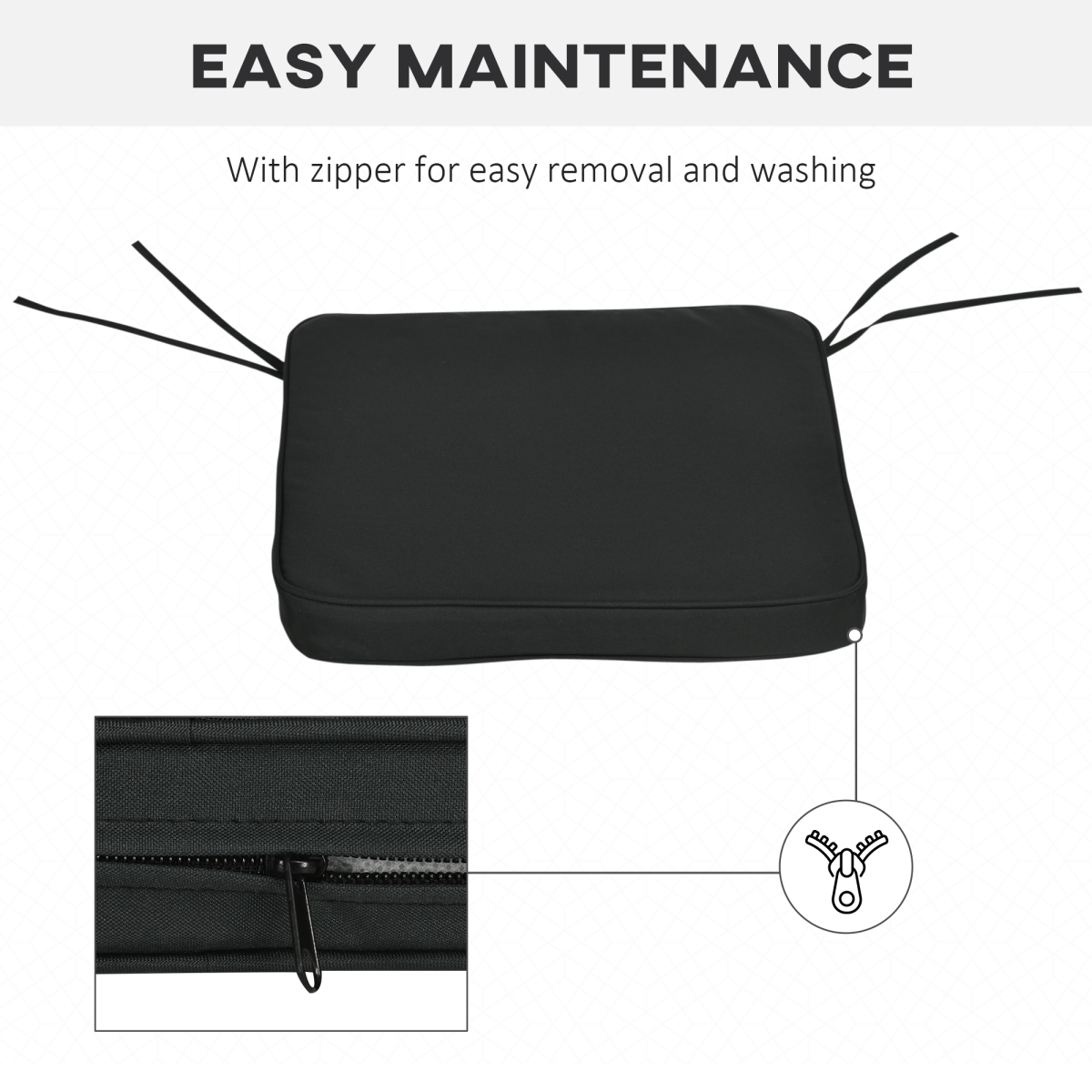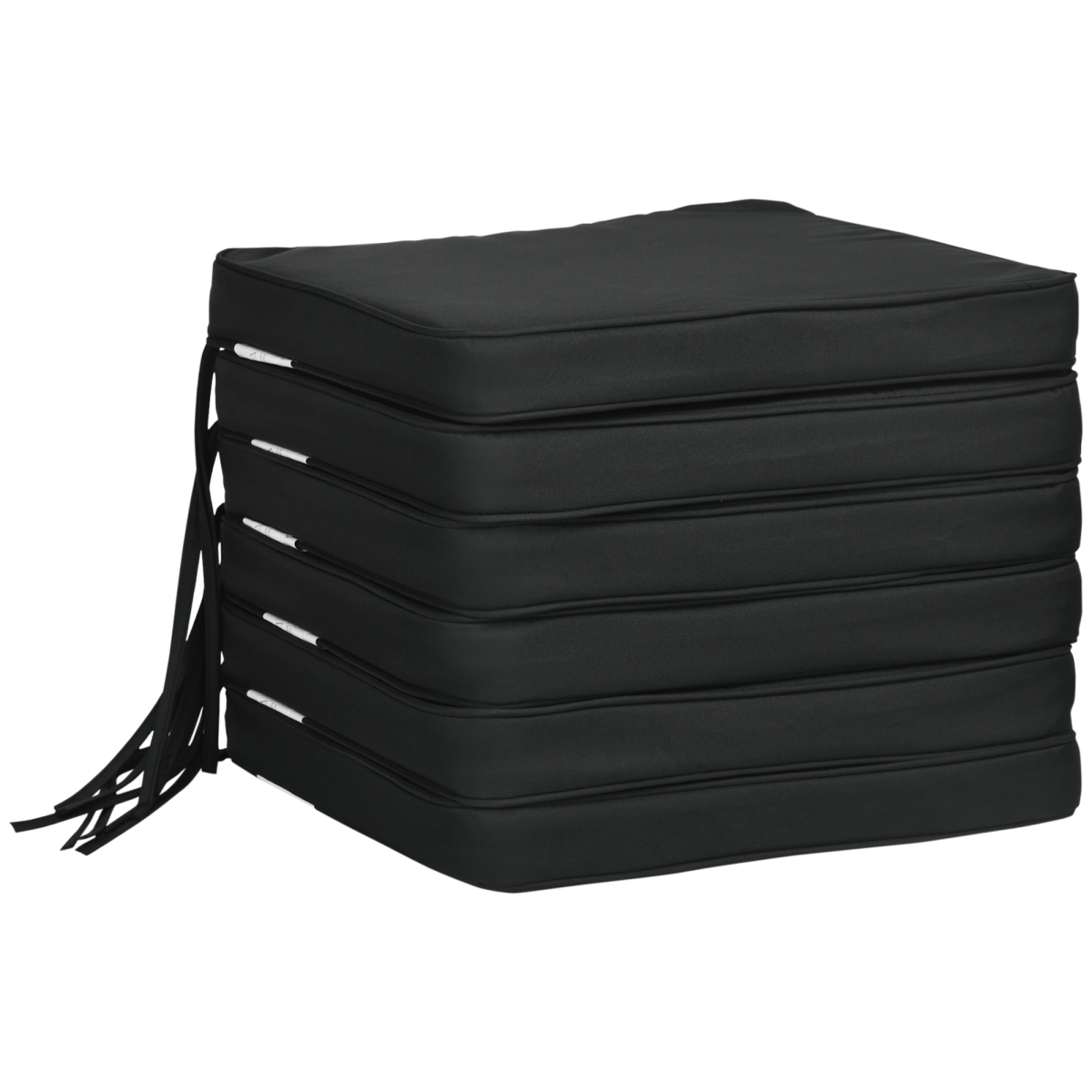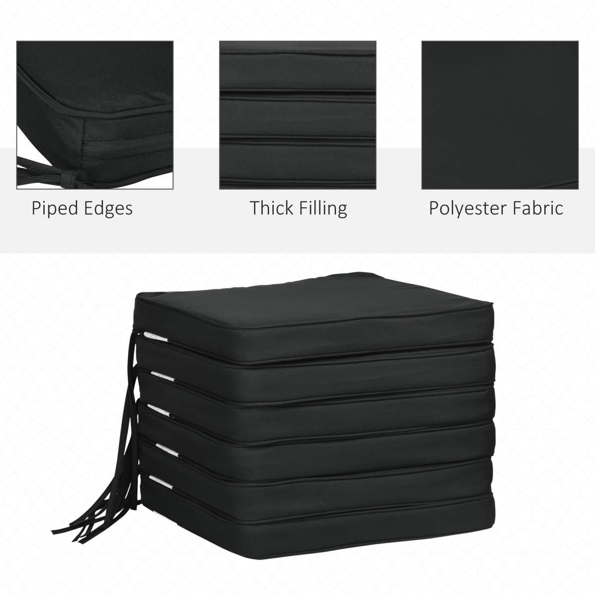 Outsunny Set of 6 Chair Cushion Seat Pads Dining Chair w/ Straps Outdoor Black