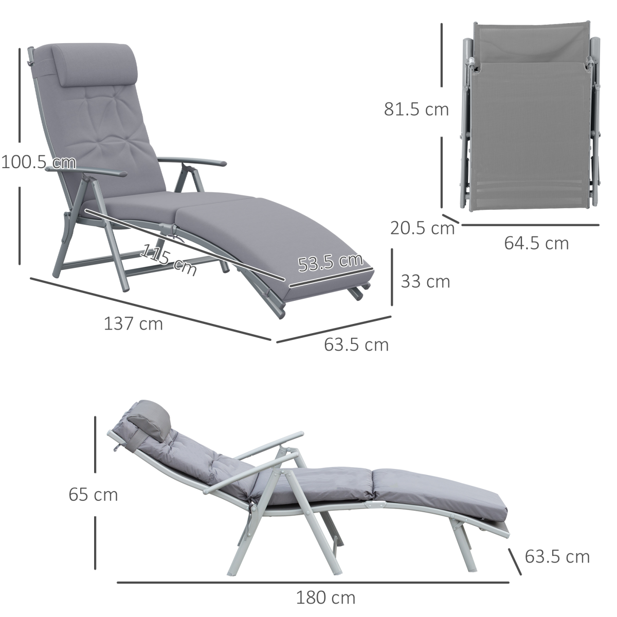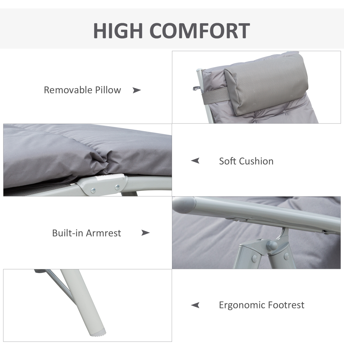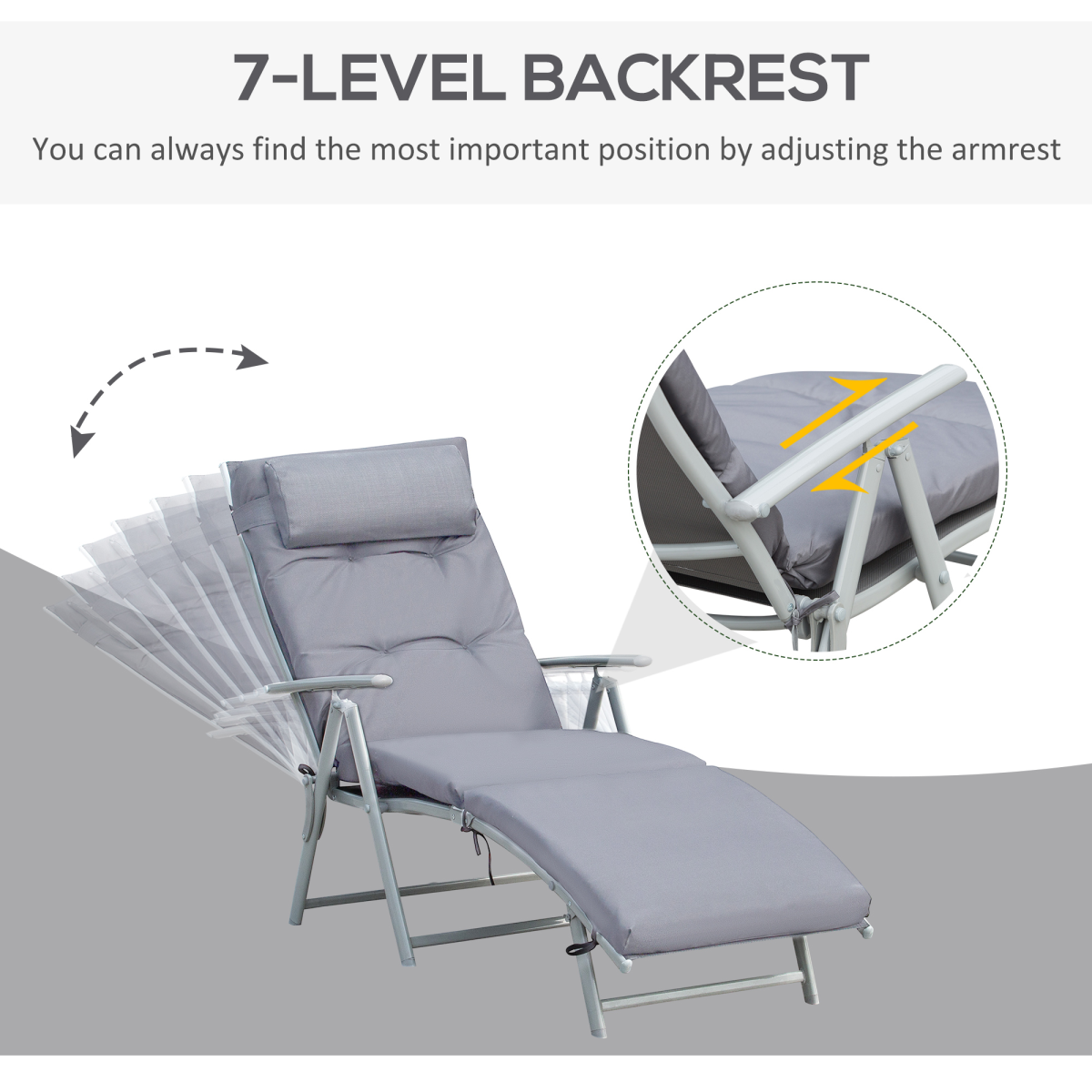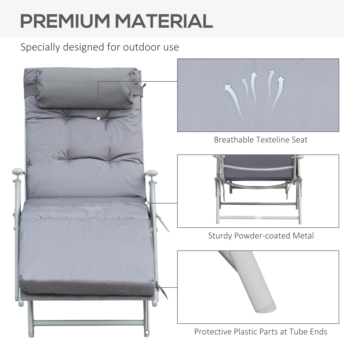 - "Outsunny Steel Frame Outdoor Garden Padded Sun Lounger w/ Pillow Grey"