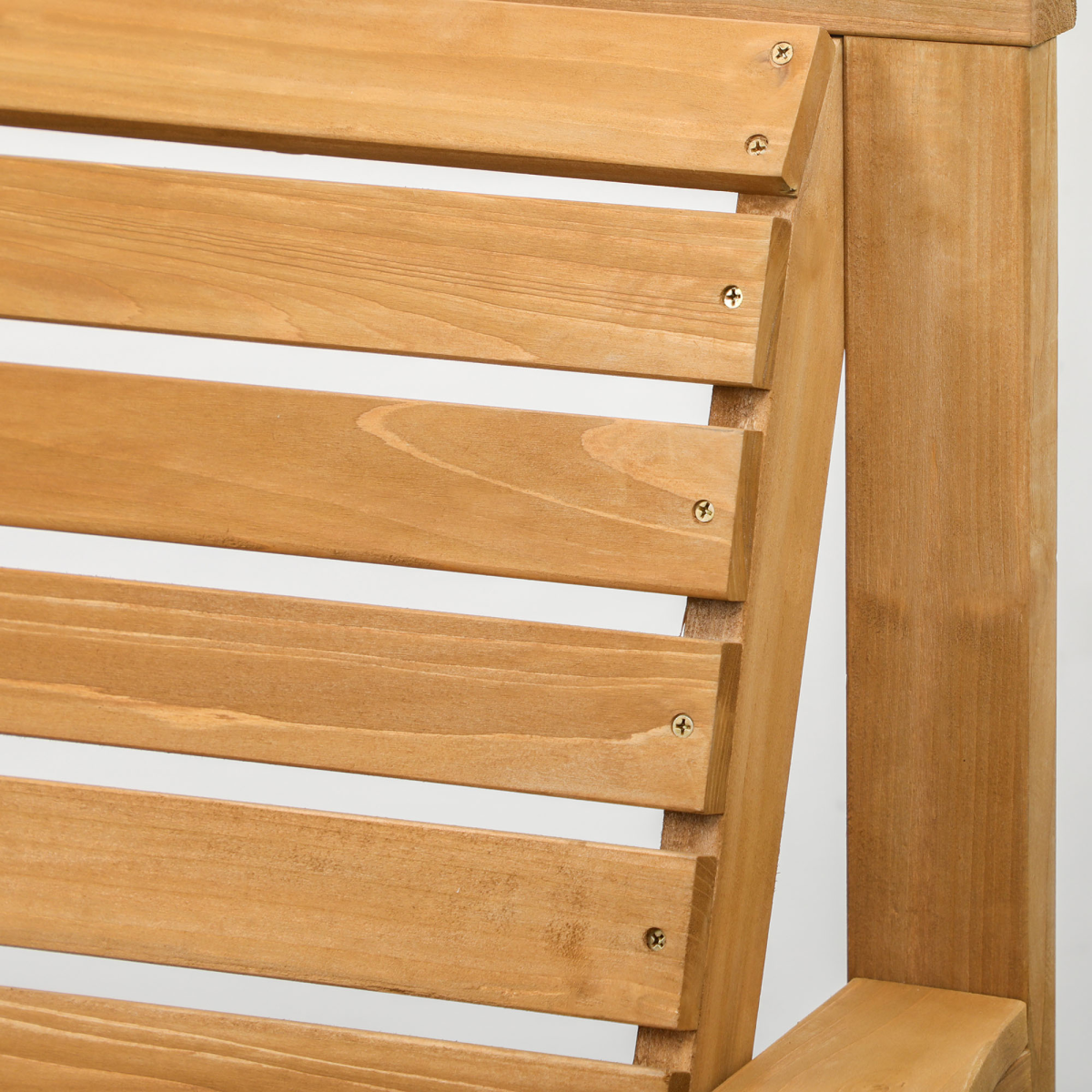 Two-seat: A combined design, this companion bench means you can relax with company right next to you.Table with parasol hole: Relax on this garden loveseat protected by shade. e6cm fits most Outsunny garden umbrellas. In addition, you can take off the table top, so you can use it as two separate chairs.Wooden garden seat: Made from fir wood, this is a sturdy piece which is suitable for outdoor use.Natural finish: Leave this wooden garden chair duo how it is, or customise to how you want. Versatile garden seating.Dimensions: 90H x 66W x 65Dcm. Table: 3H x 38/79W x 56Dcm. Seat: 44H x 50W x 44Dcm. Maximum load: Table: 50kg. Single seat: 130kg. Assembly required.