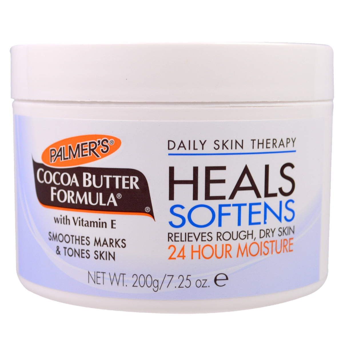 With Vitamin E Daily Skin Therapy Heals, Softens, Relieves Rough, Dry Skin 24 Hour Moisture Smoothes Marks & Tones Skin Rich, luxurious Palmer's Cocoa Butter Formula original solid provides deep hydration all over. This unique formula melts into skin, creating a protective barrier that locks in moisture. From normal to dry to eczema prone skin, this emollient rich solid effectively heals and softens, leaving skin smooth, supple and beautiful. Ideal for deep miniaturization, including overnight treatments. Pure Cocoa Butter & Vitamin E Provides 24 Hour Moisture Fast-Absorbing Proven to Heal Dry Skin Suitable for Eczema Prone Skin Soothes Skin After Sun Exposure Smoothes Marks & Scars Paraben & Phthalate Free
