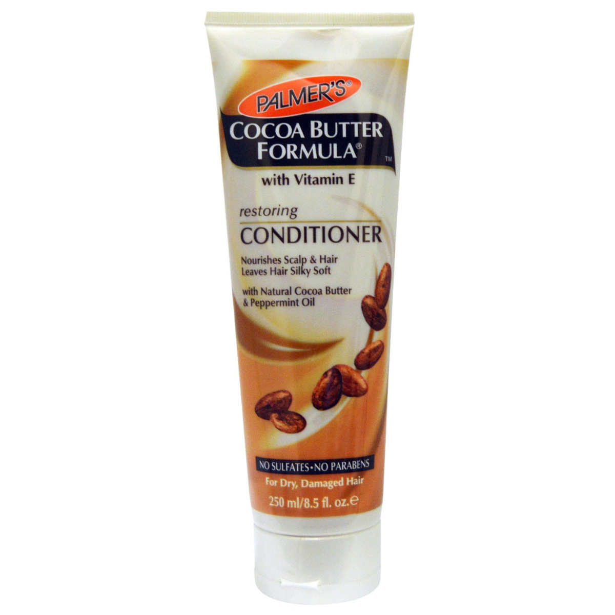 With Vitamin E Nourishes Scalp & Hair Leaves Hair Silky Soft With Natural Cocoa Butter & Peppermint Oil No Sulfates • No Parabens For Dry, Damaged Hair Perfect Formula. Extraordinary Results. Palmer's Cocoa Butter Formula Restoring Conditioner combines the ultra- moisturizing benefits of 100% Pure Cocoa Butter and Vitamin E to nourish hair and scalp leaving your hair beautifully moisturized and shiny. These luxurious moisturizers will soften and detangle your hair for easy styling and manageability. Natural Peppermint Oil is added to refresh hair and soothe dry scalp. A luscious minty chocolate fragrance is an added benefit to the senses.
