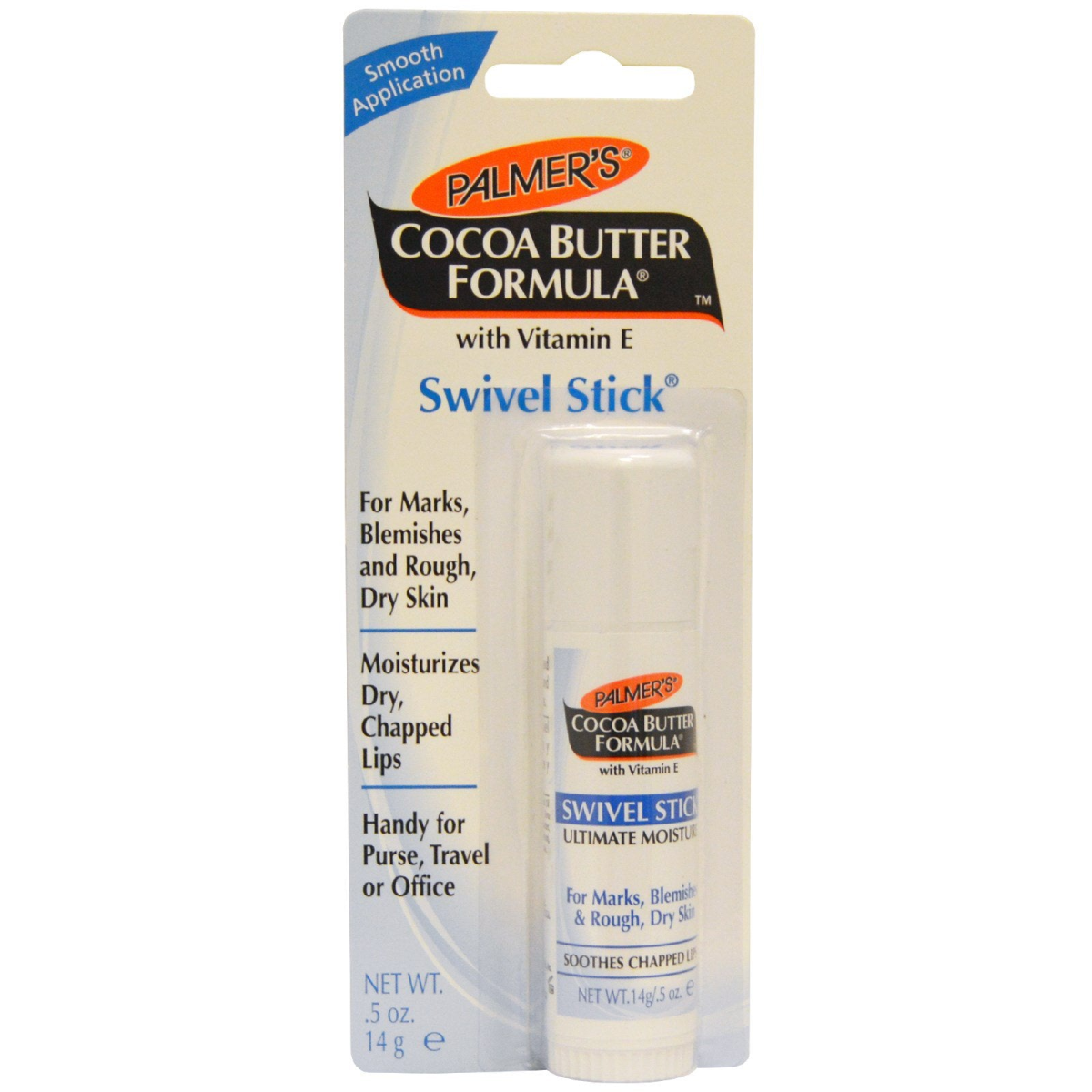 Smooth Application With Vitamin E For Marks, Blemishes, and Rough, Dry Skin Moisturizes Dry, Chapped Lips Handy for Purse, Travel or Office Perfect Formula. Extraordinary Results. Palmer's Cocoa Butter Formula Swivel Stick provides on-the-spot help for marks and blemishes and is ideal for touch-up moisturizing on face and body. Also may be used to moisturize and soothe dry, cracked, chapped lips.