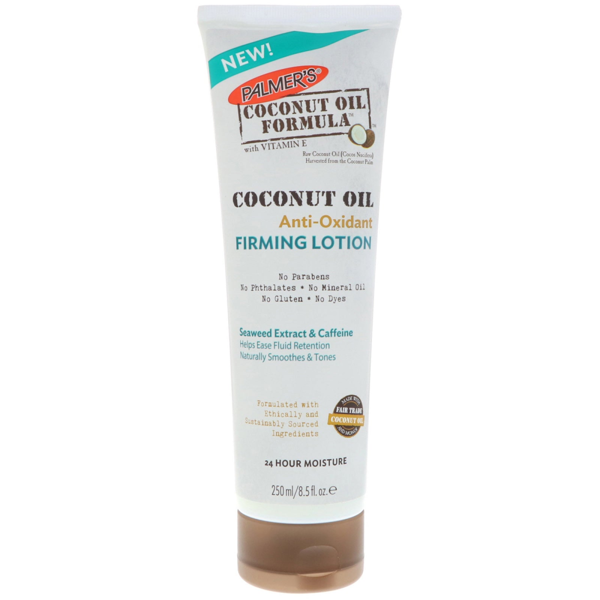 With Vitamin E Raw Coconut Oil (Cocos Nucifera) Harvested from the Coconut Palm No Parabens No Phthalates No Mineral Oil No Gluten No Dyes Seaweed Extract & Caffeine Helps Ease Fluid Retention Naturally Smoothes & Tones Formulated with Ethically and Sustainably Sourced Ingredients Made with Fair Trade Coconut Oil and Monoi 24 Hour Moisture Palmer's Is Against Animal Testing Family Owned & Operated Palmer's Coconut Oil Formula products contain ethically and sustainably sourced Coconut Oil and Tahitian Monoi Oil, infused with Tiare flower petals. These raw, natural ingredients deliver luxuriously rich moisturization for decadently pampered skin. Palmer's Coconut Oil Anti-Oxidant Firming Lotion uses the inherent skin-toning benefits of plant-based seaweed, potent botanicals and coconut oil to help ease fluid retention, encourage circulation and give skin a smoother, more toned and heathier-looking appearance. Coconut Oil (Cocos Nucifera) - Provides All-Day Hydration to Keep Skin Looking Healthy Seaweed Extract (Fucus Vesiculosus) - Helps Ease Fluid Retention and Supports Skin Firming Sweet Almond Oil (Prunus Amygdalus Dulcis) - Improves Skin's Elasticity and Helps Tone Caffeine - Improves Circulation for a Smoother Appearance
