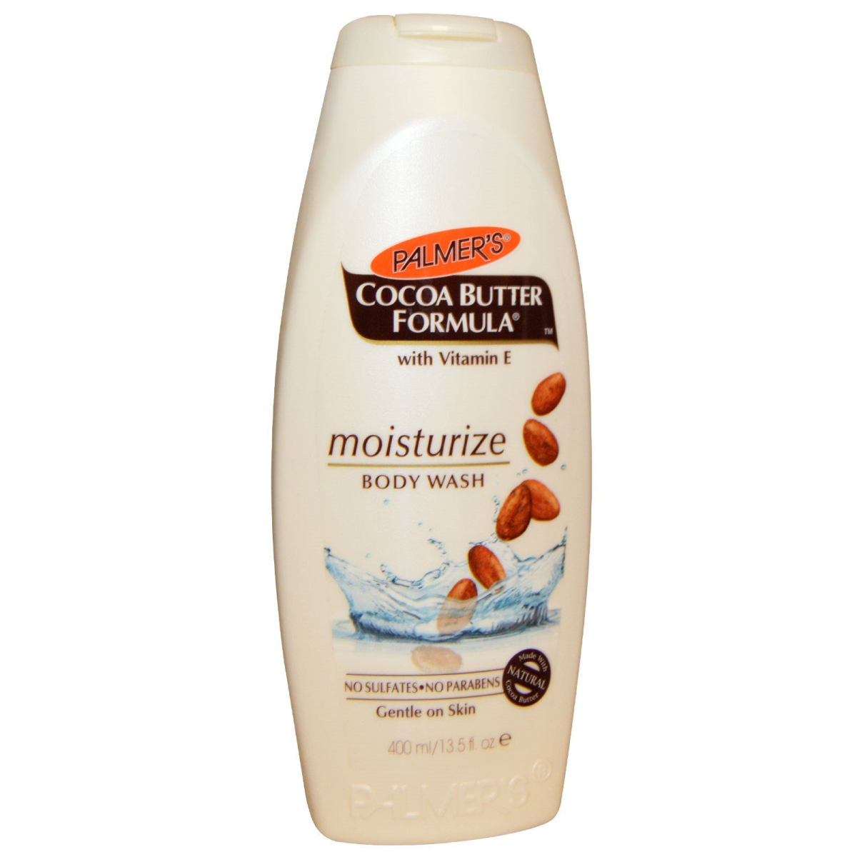 No Sulfates No Parabens Gentle on Skin Made with Natural Cocoa Butter Palmer's Cocoa Butter Formula with Vitamin E Moisturize Body Wash containing natural cocoa butter is a combination of gentle-cleansing and emollient-rich moisturizing ingredients. This naturally creamy body wash is ideal for sensitive skin, dry skin and even delicate areas. Cleanse and moisturize in one easy step with a formula that is free of sulfates.