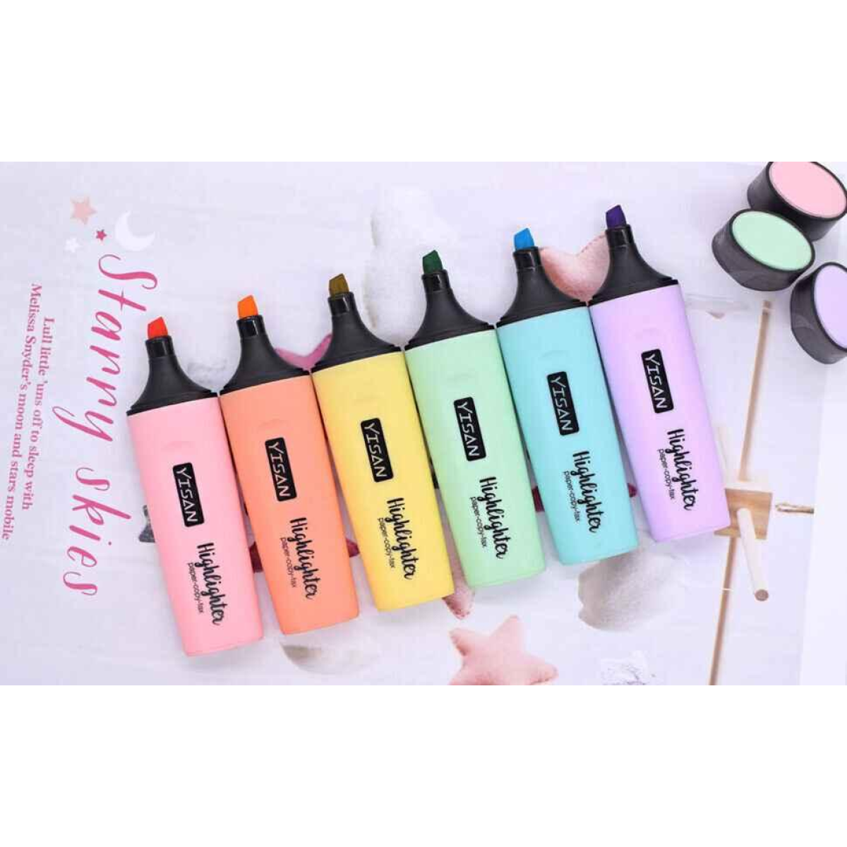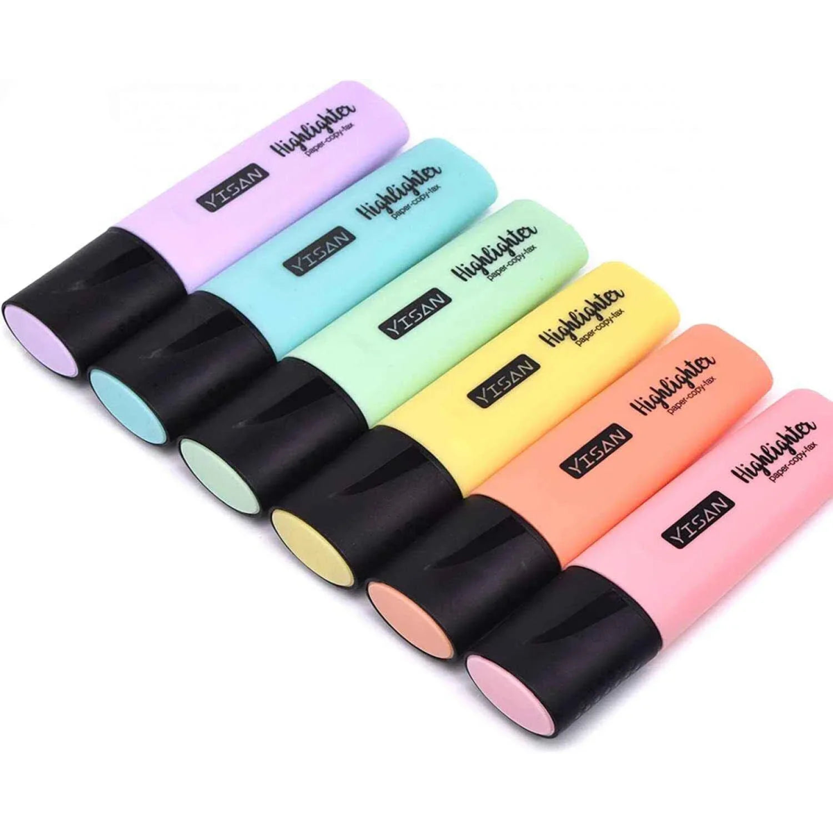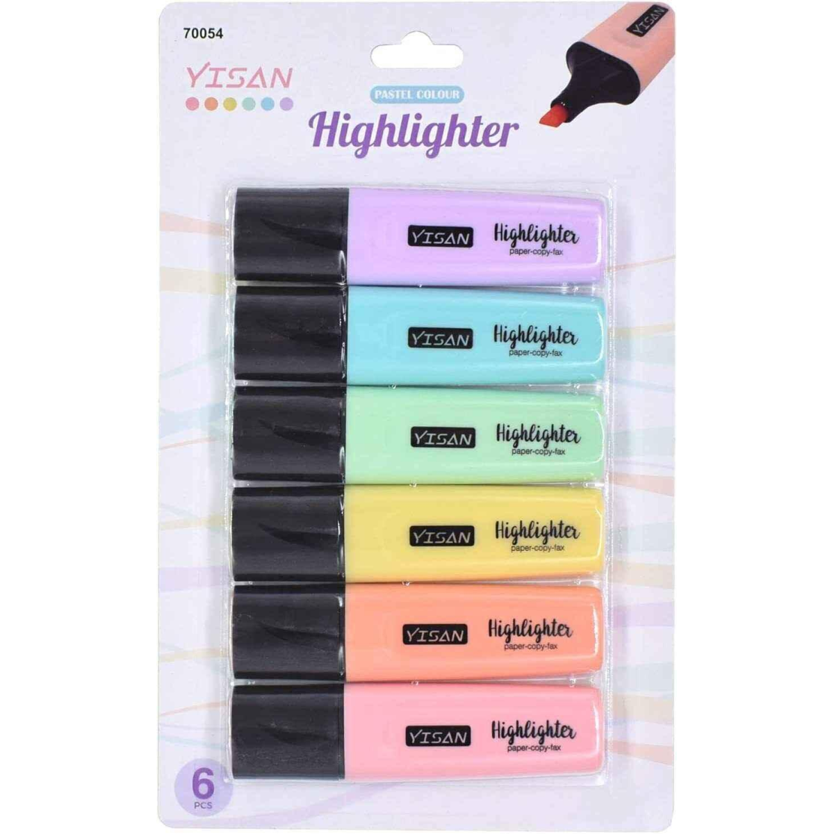 - YISAN Pastel Highlighters are an essential tool for anyone looking to add a touch of colour and creativity to their notes, artwork, or study materials. Featuring a range of soothing pastel colours, these highlighters allow you to highlight important information without overwhelming your eyes. Each marker is designed with a chisel tip, which provides versatility for both fine and broad highlighting, making them perfect for everything from journaling to studying for exams.