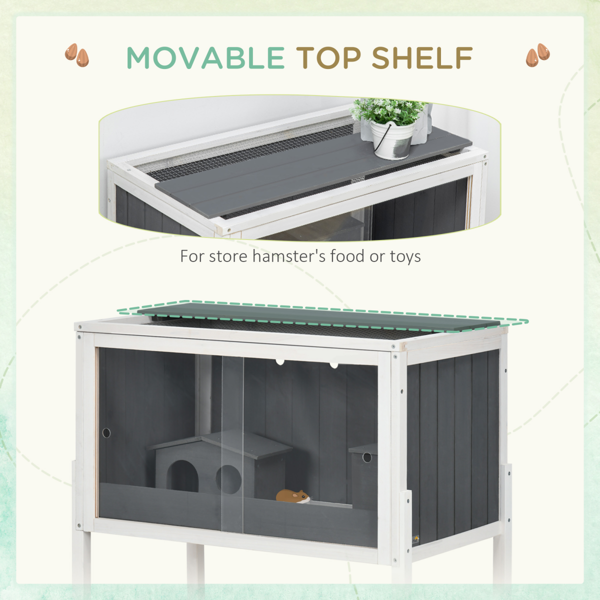 PawHut Wooden Hamster Cage for Dwarf Hamsters, Gerbils, Rutin Chicken w/ Shelf