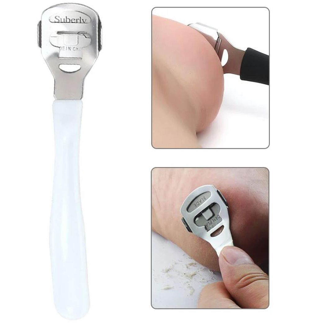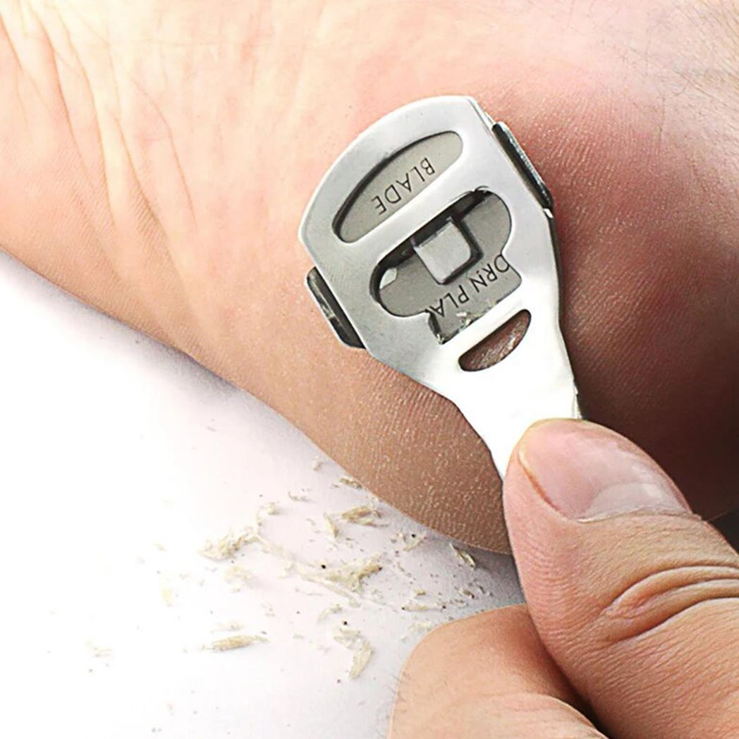 stainless steel head with plastic handle, great for removing hard skin/Cuticle/Corn/Cutting Callous.