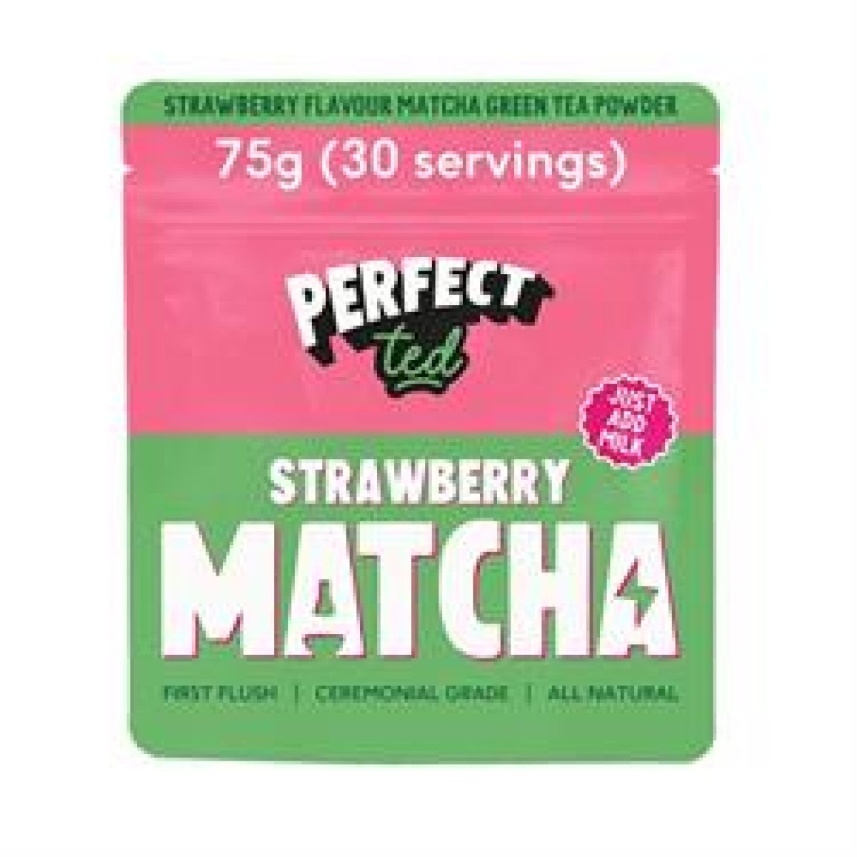 Strawberry flavour matcha green tea powder. Shade-grown, hand-picked, air-dried, stone-ground, ceremonial grade, non-GMO matcha. Matcha is a finely ground green tea powder celebrated for its vibrant colour, smooth taste, and powerful health benefits. Matcha delivers a concentrated dose of antioxidants and nutrients, while providing calm, sustained energy, thanks to a unique combination of caffeine and L-theanine.