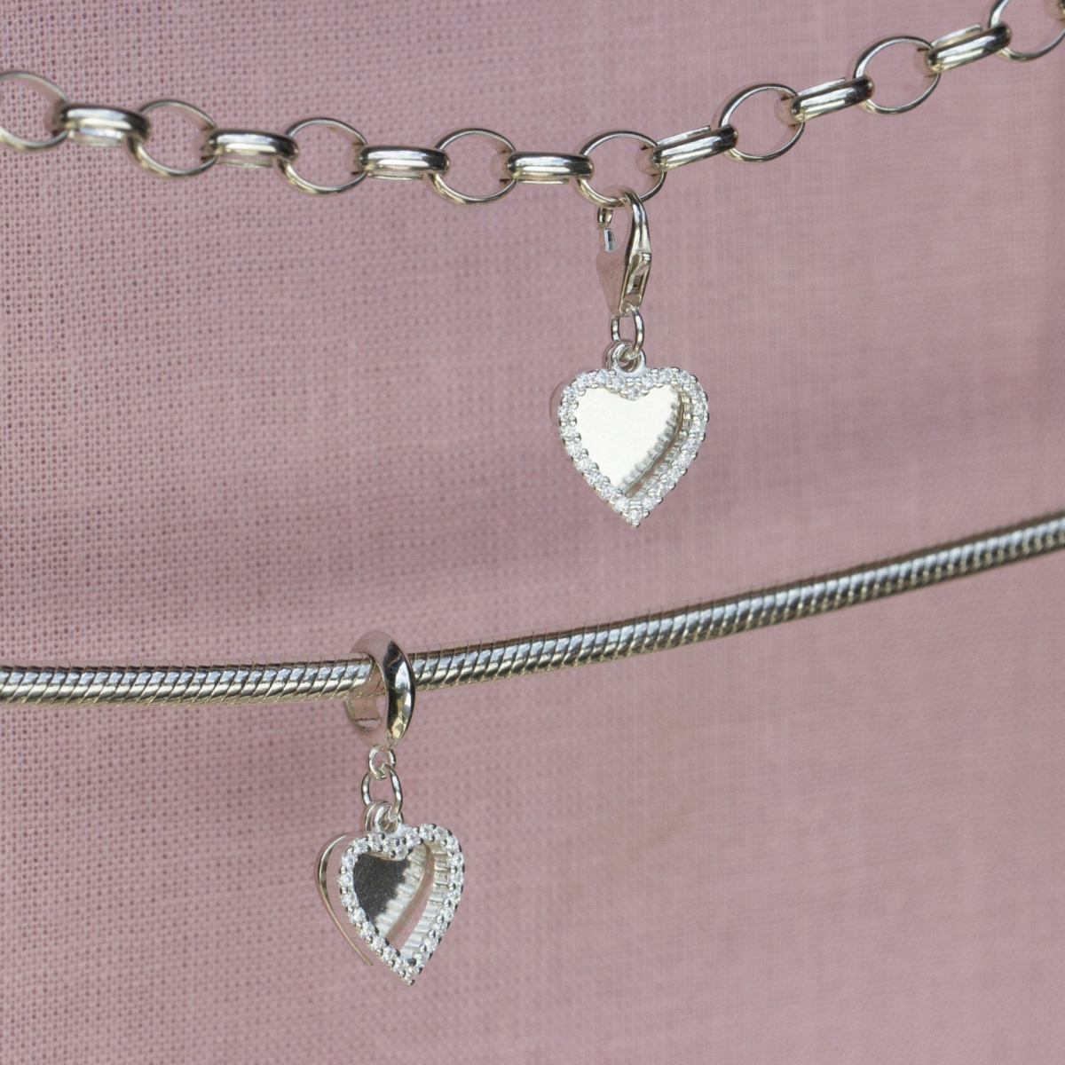 Add a unique touch to your jewellery collection with our Crystal Double Heart Charm, crafted from solid 925 sterling silver. Featuring a personalised heart charm with a Crystal Heart, these Charms are perfect for those who love stylish and distinctive jewellery.