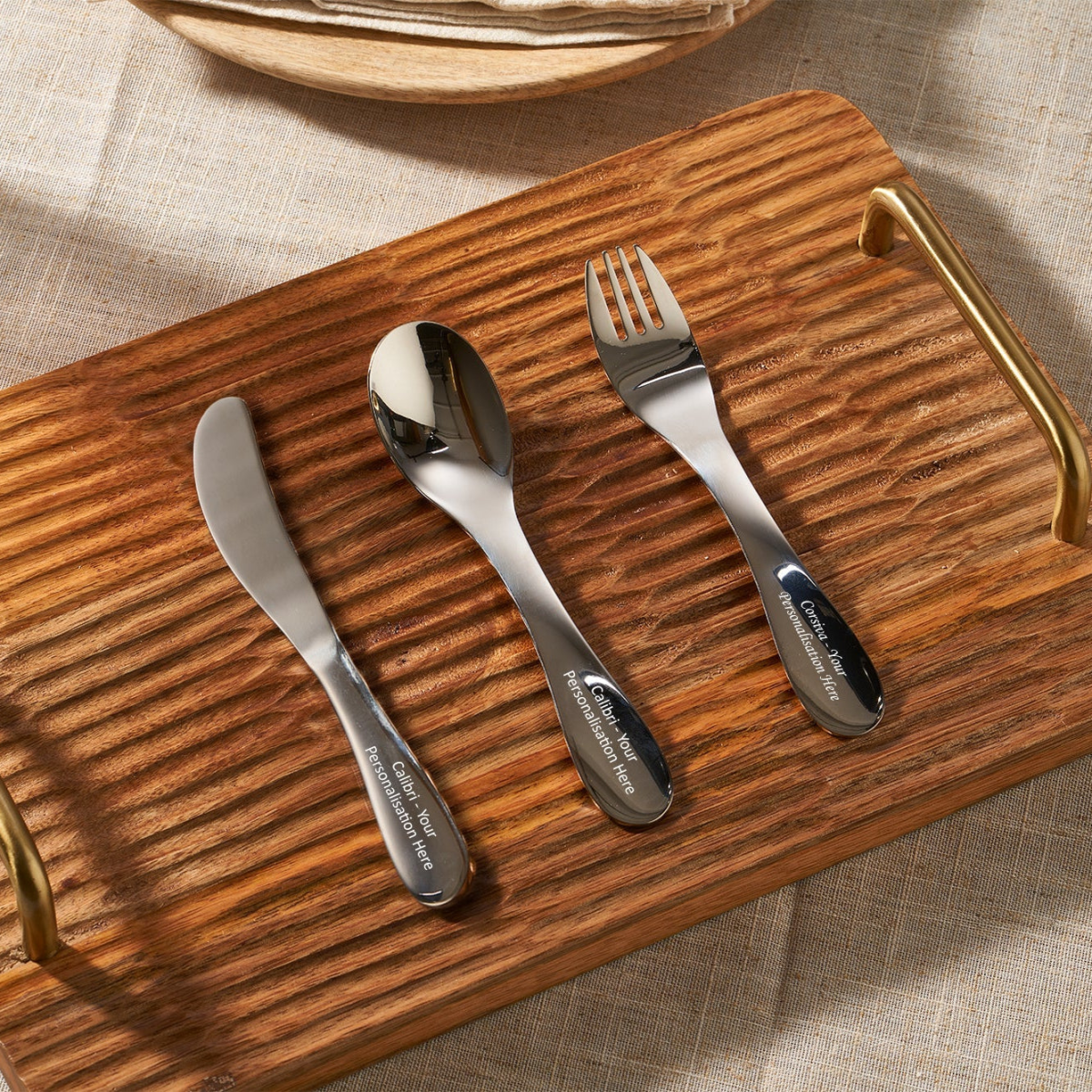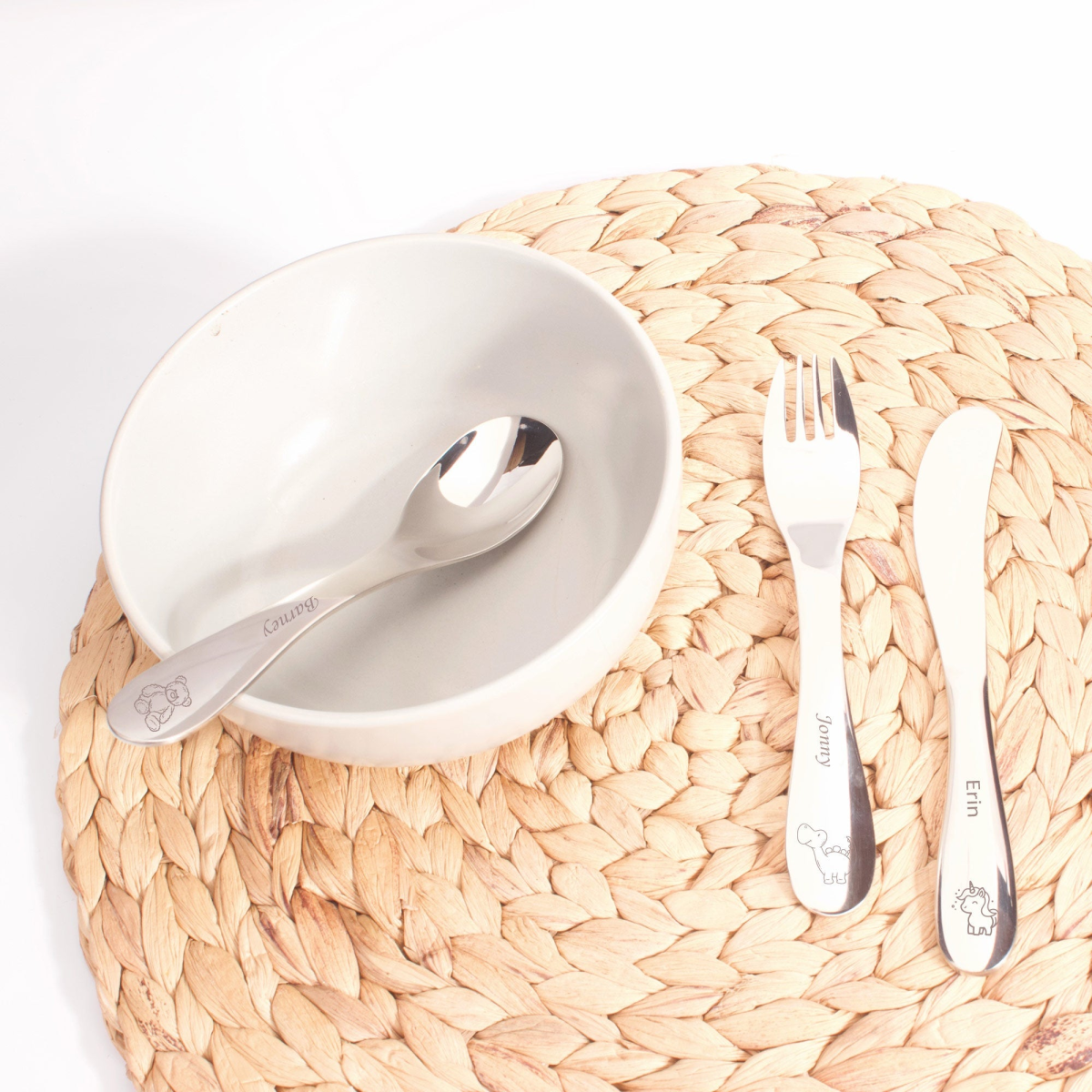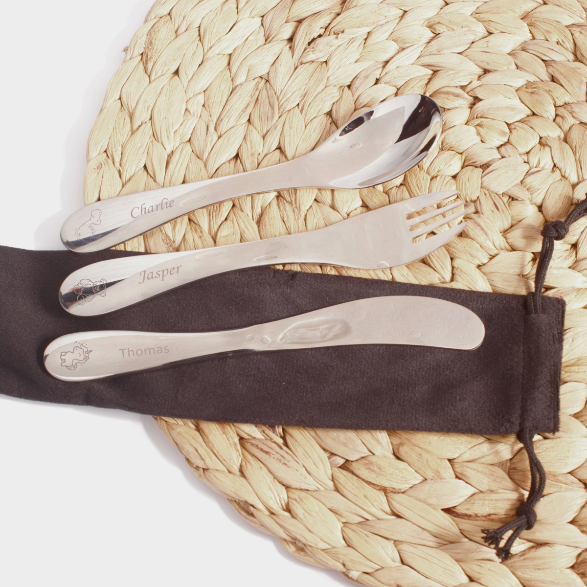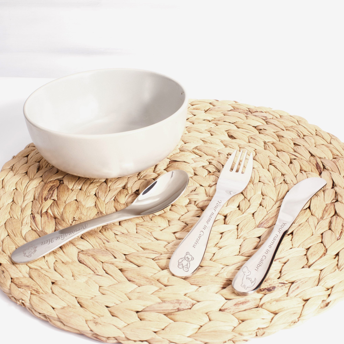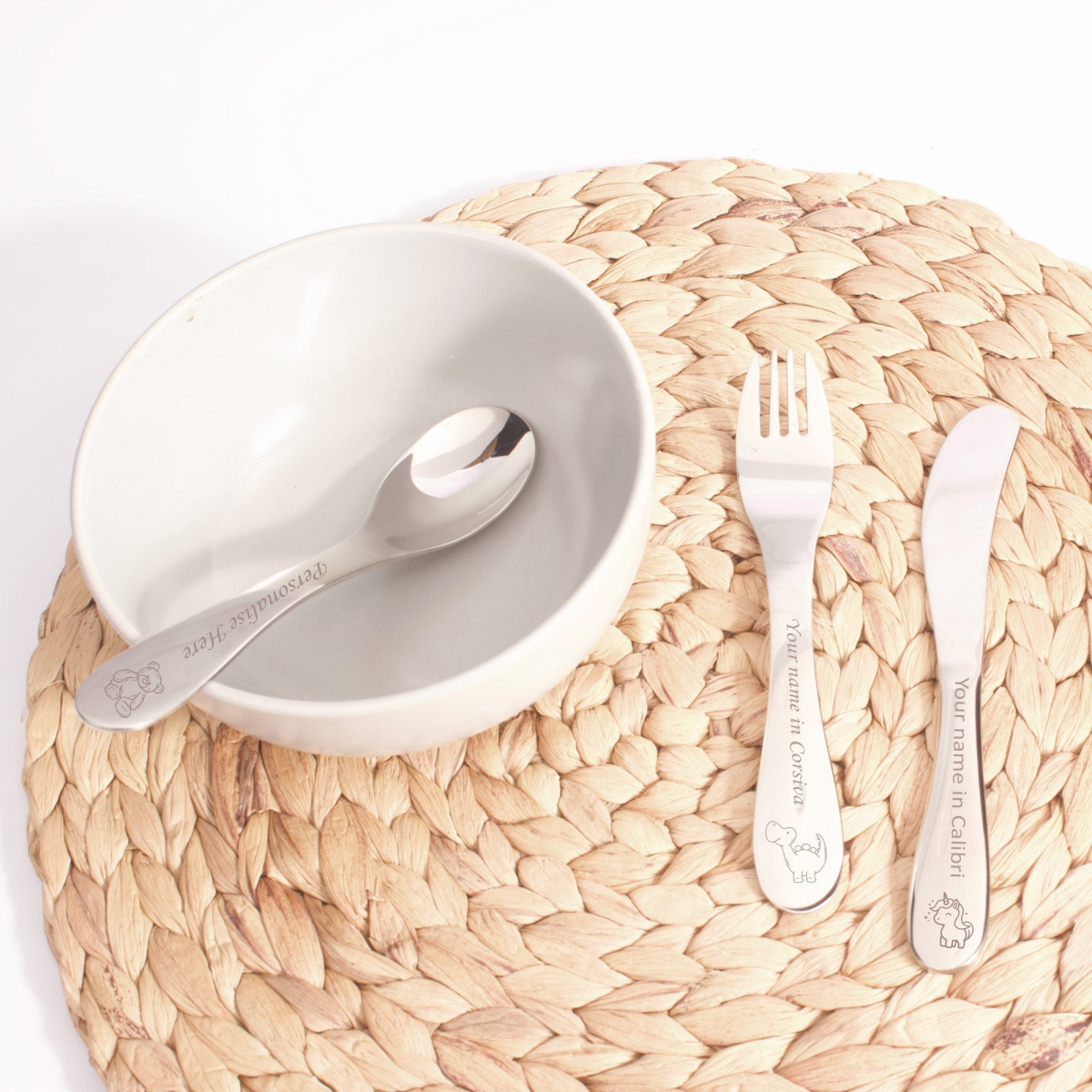 Make mealtime playful with our Personalised Stainless Steel Child Size Cutlery Set!