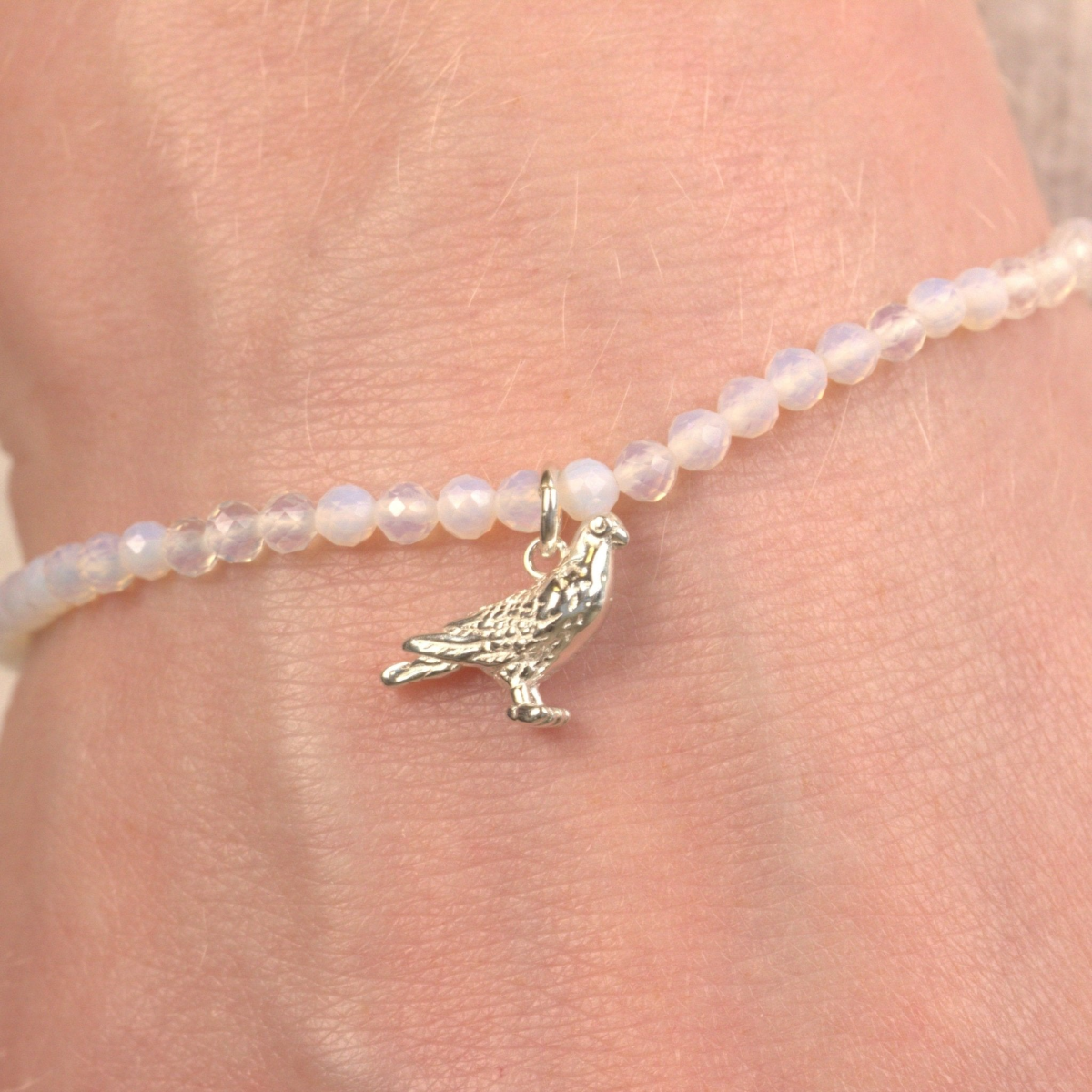 Celebrate the beloved Pigeon with this personalised Pigeon bracelet made with your choice of semi precious stones. Whether it’s a thoughtful birthday gift for a bird mum or a heartfelt keepsake for a pigeon lover, this bracelet is a beautiful way to honour the special bond you share. Choose from a Black Onyx, Rose Quartz, Red Aventurine, Amethyst, Opal or Turquoise bracelet.
