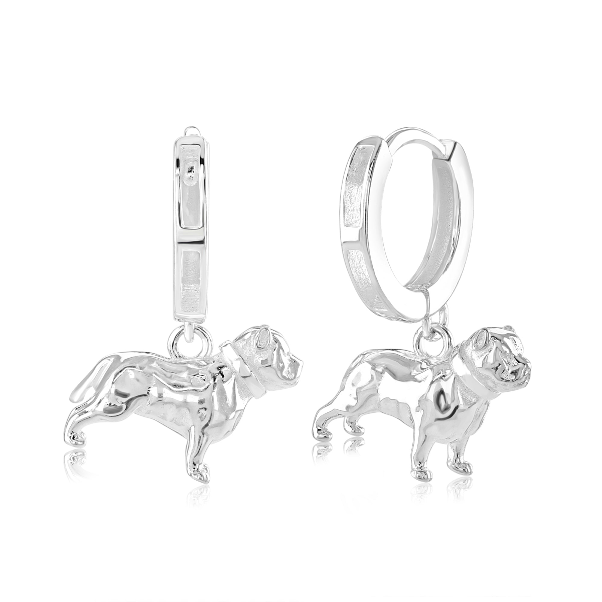 Celebrate your love for Pitbulls with our Pitbull Earrings, a beautifully crafted keepsake designed for dog lovers. Choose from either a Hook or a Huggie hoop style earring to best fit your preference. These high-quality 925 sterling silver earrings feature detailed pendants that showcase the classic characteristics of this intelligent and obedient breed and are guaranteed to brighten your day. A perfect gift for Pitbull owners, dog lovers, or anyone who appreciates sterling silver jewellery.