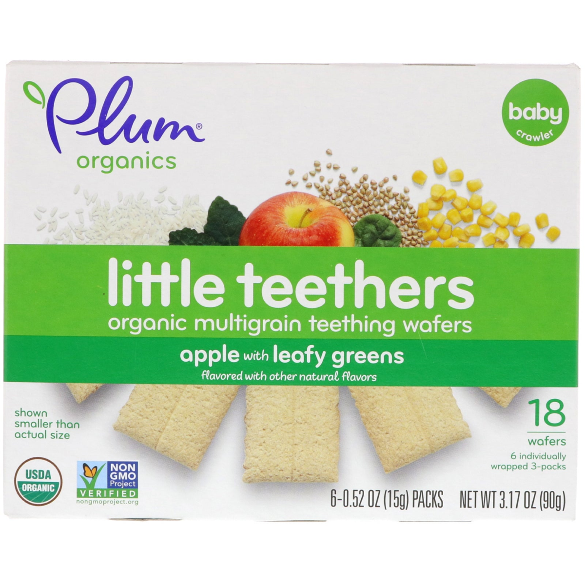 Plum s, Little Teethers, Multigrain Teething Wafers, Apple with Leafy Greens, 6 Packs, 0.52 oz (15 g) Each