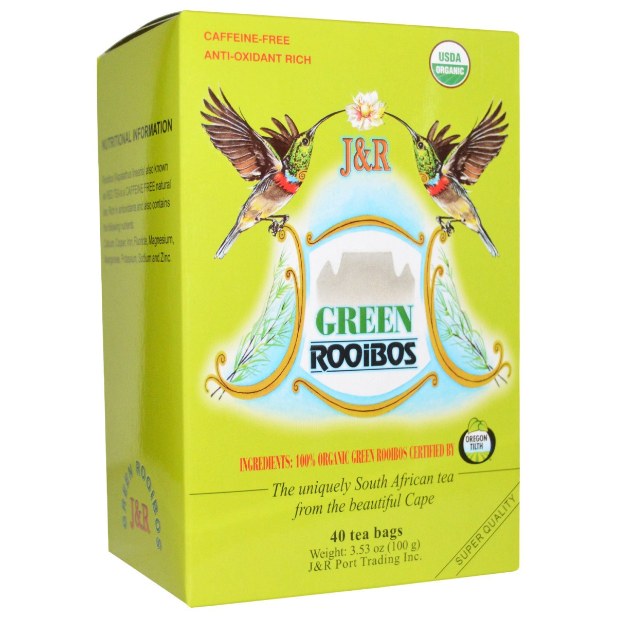 Port Trading Co., Green Rooibos, Caffeine-Free, 40 Tea Bags, 3.53 oz (100 g)