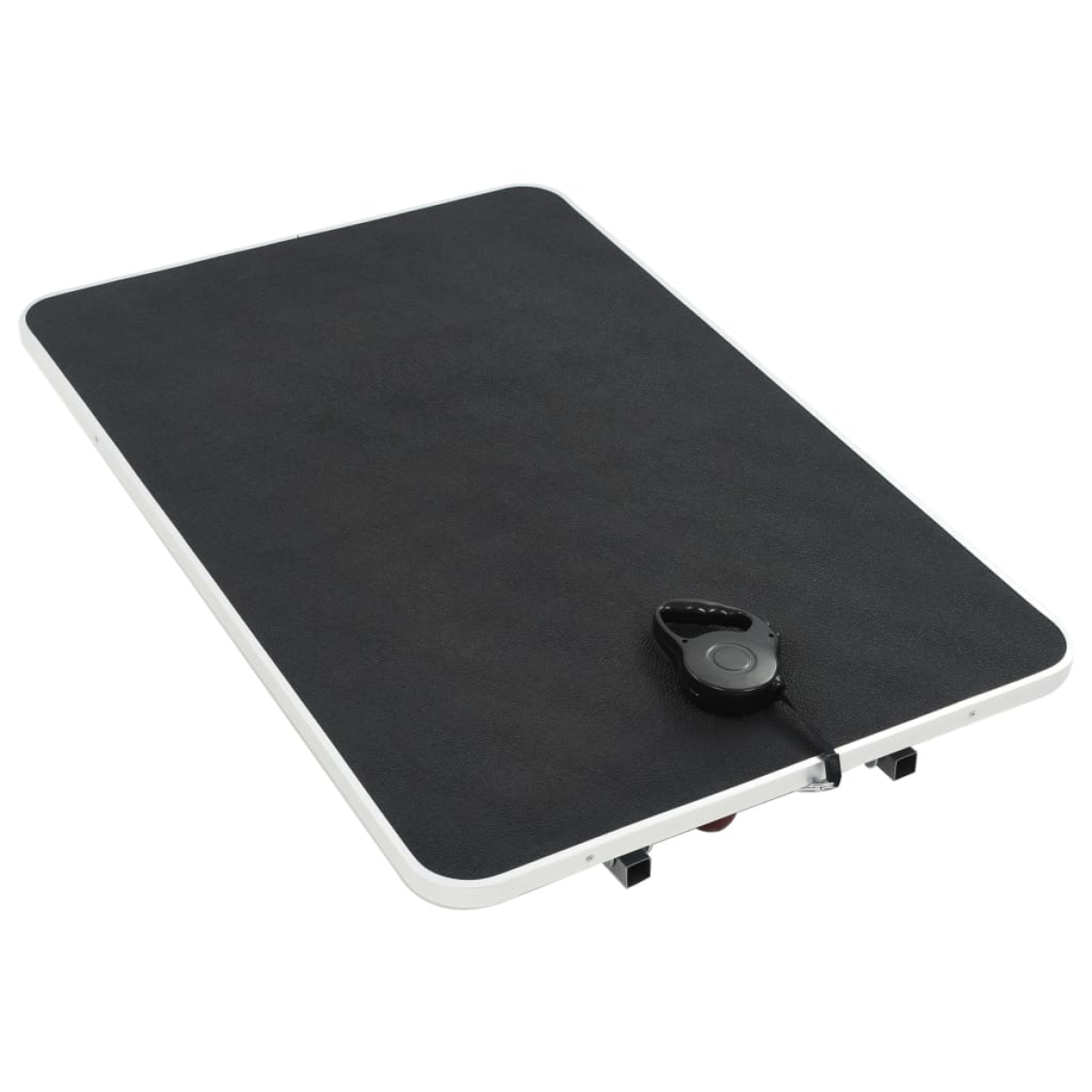 This portable pet grooming table is perfect for home and mobile groomers. The professional adjustable grooming table enables you to perfectly position your furry friend for bathing, trimming, drying, grooming, and so on. It features a non-slip tabletop and a powder-coated iron frame with an adjustable grooming arm and noose. The table top with an anti-skid rubber surface is soft and safe for you pets. The adjustable grooming noose restrains pets safely and features an improved locking clasp. The grooming arm is easy to demount when not in use for easy storage and transport. Moreover, this dog grooming table has castors for easy transport. An assembly tool is included.