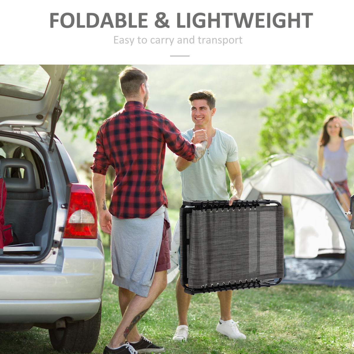 Portable Sun Lounger, Folding Camping Adjustable , Pillow Grey