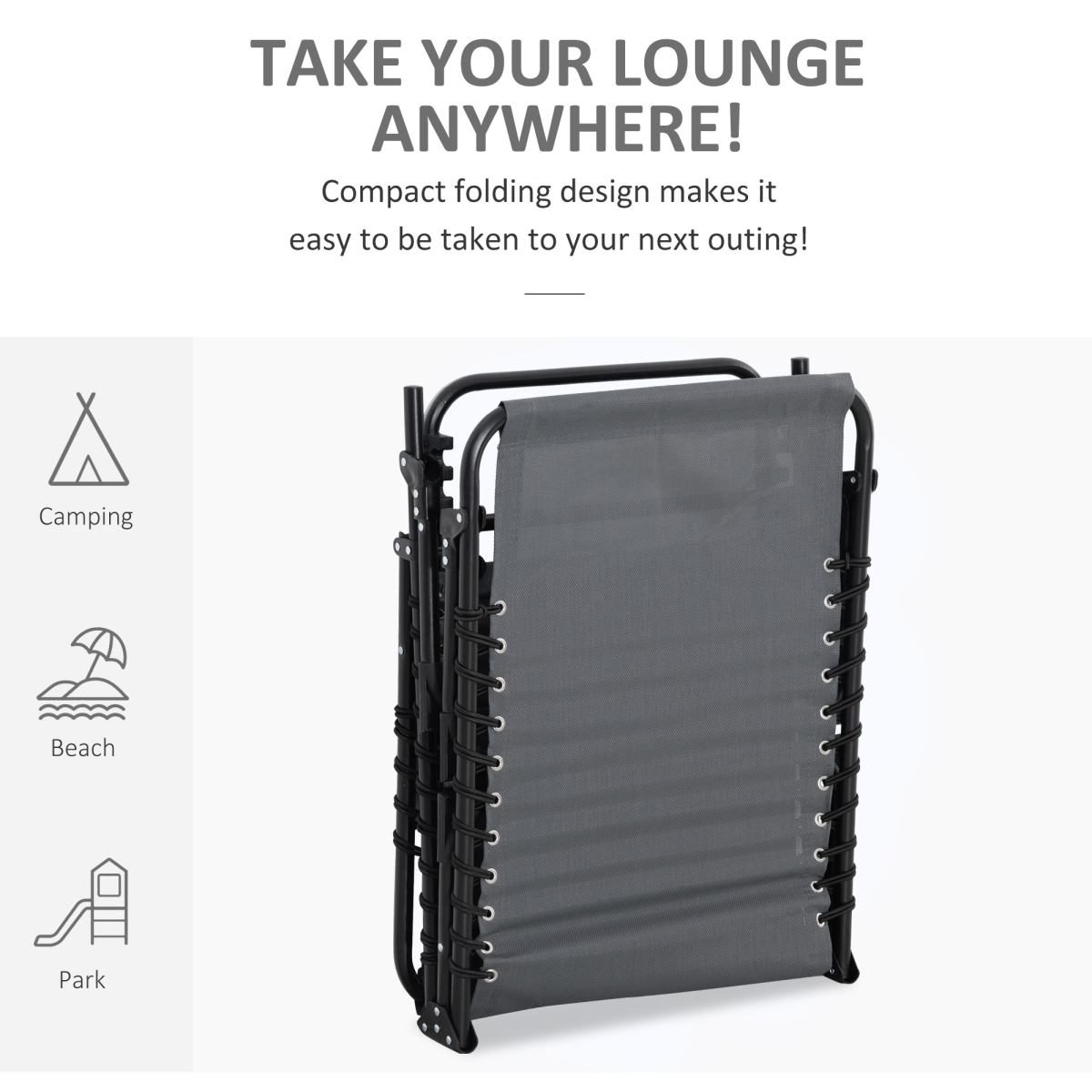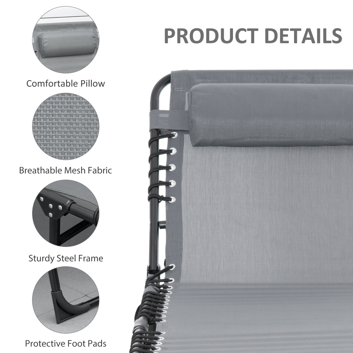 Portable Sun Lounger, Reclining Lounge Chair 5-position Adjustable Pillow Grey