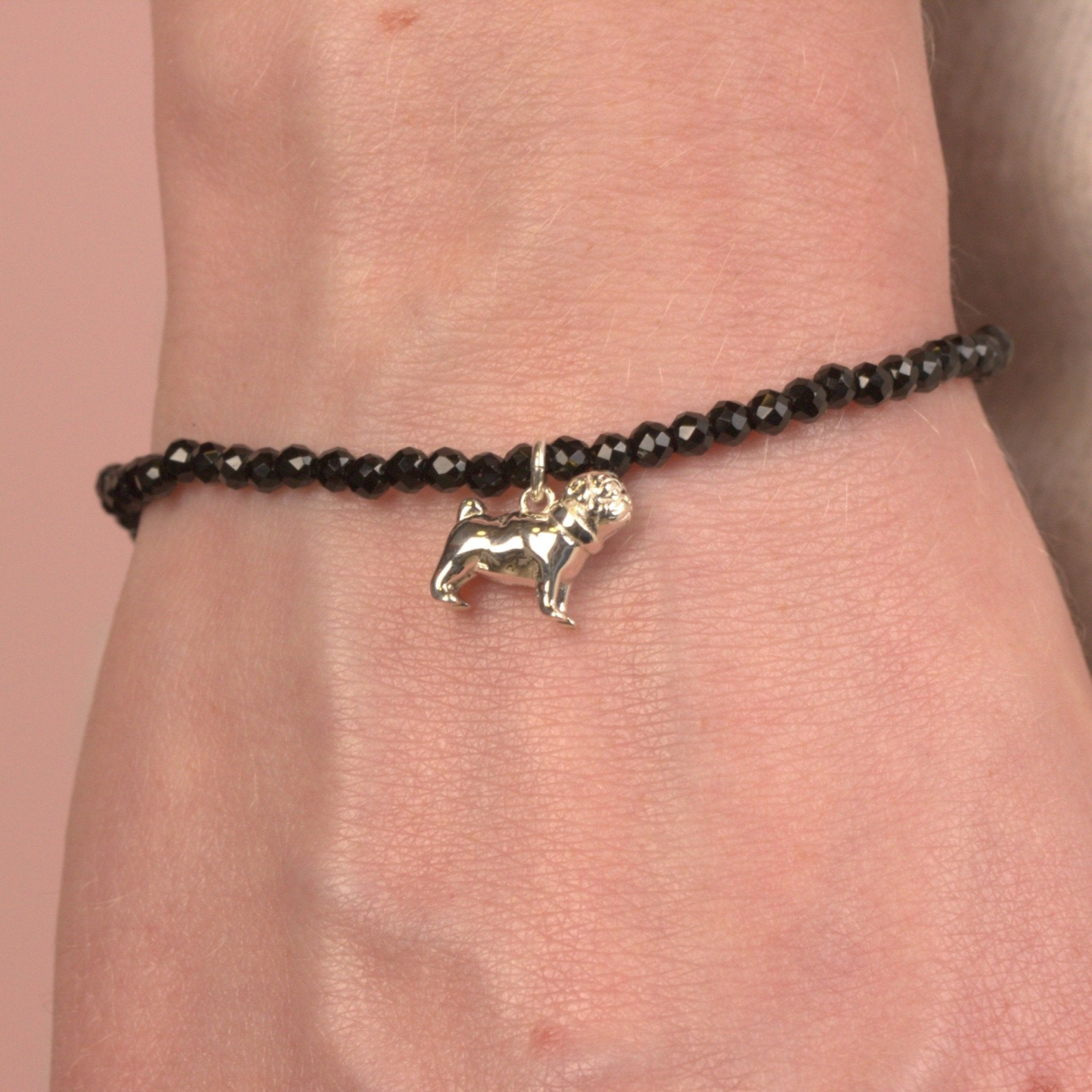 Personalise the bracelet with your Pug's name on the charming sterling silver bone tag. A pawsome personalised present for dog lovers.
