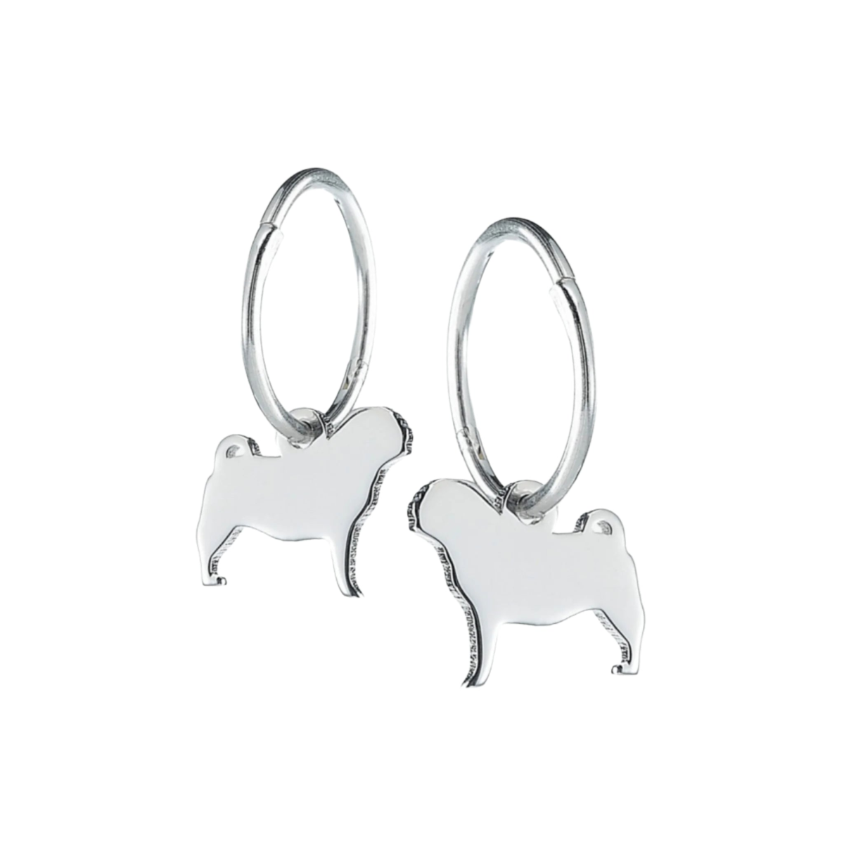Pug Silhouette Silver Earrings