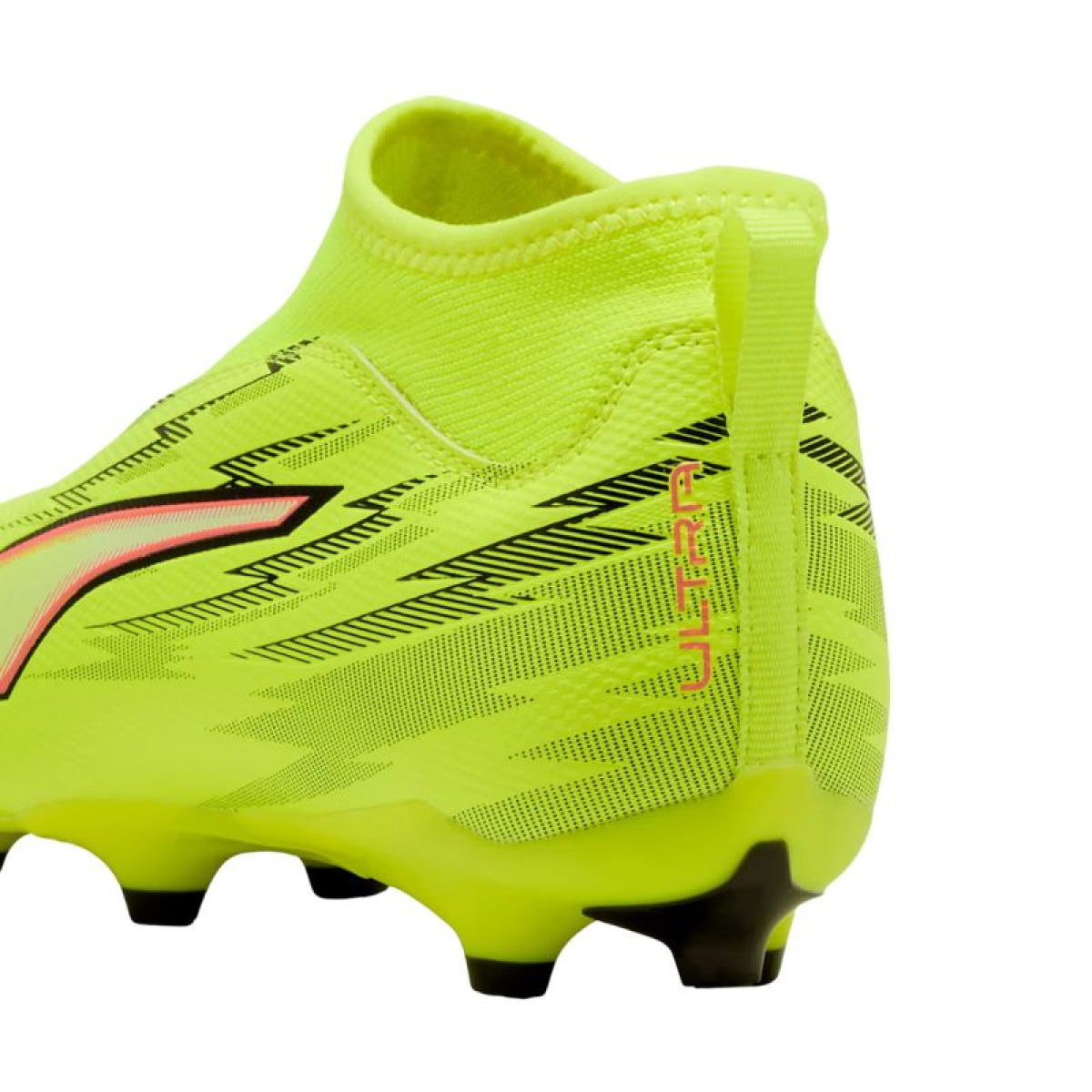 Puma Ultra 6 Match+ LL FG/AG 108691 01 Kids' Football Boots. These Puma kids' football boots from the premiere Unleashed Pack collection are perfect for playing on firm, natural, and artificial surfaces. The upper, made from at least 30% recycled material, features a low-cut knit upper for added support. A textile lining. GripControl coating provides excellent control during fast-paced action on the pitch. The Speedsystem outsole, made of a flexible material, combines high-performance fibers with an innovative stud system. The design utilizes FastTrax studs and more rounded lateral studs for unrivaled speed on firm, natural, and artificial surfaces. Rear grip. Laceless design.