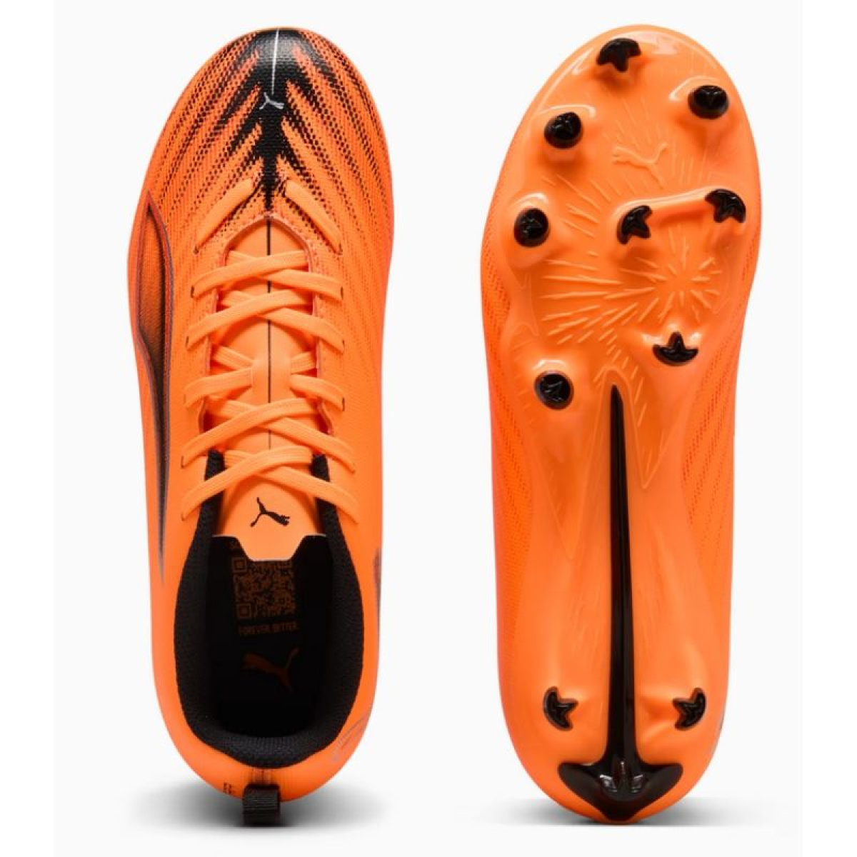 Puma Ultra football boots for kids will boost energy and speed during football matches. These recreational boots are part of the premiere collection, The Hot Pursuit Pack. They feature a lightweight synthetic upper with embossed details. Classic lacing. The Speedsystem outsole combines TPU with an innovative stud system for maximum energy return and improved acceleration. FastTrax studs and more rounded lateral studs contribute to excellent traction on both natural and artificial grass.