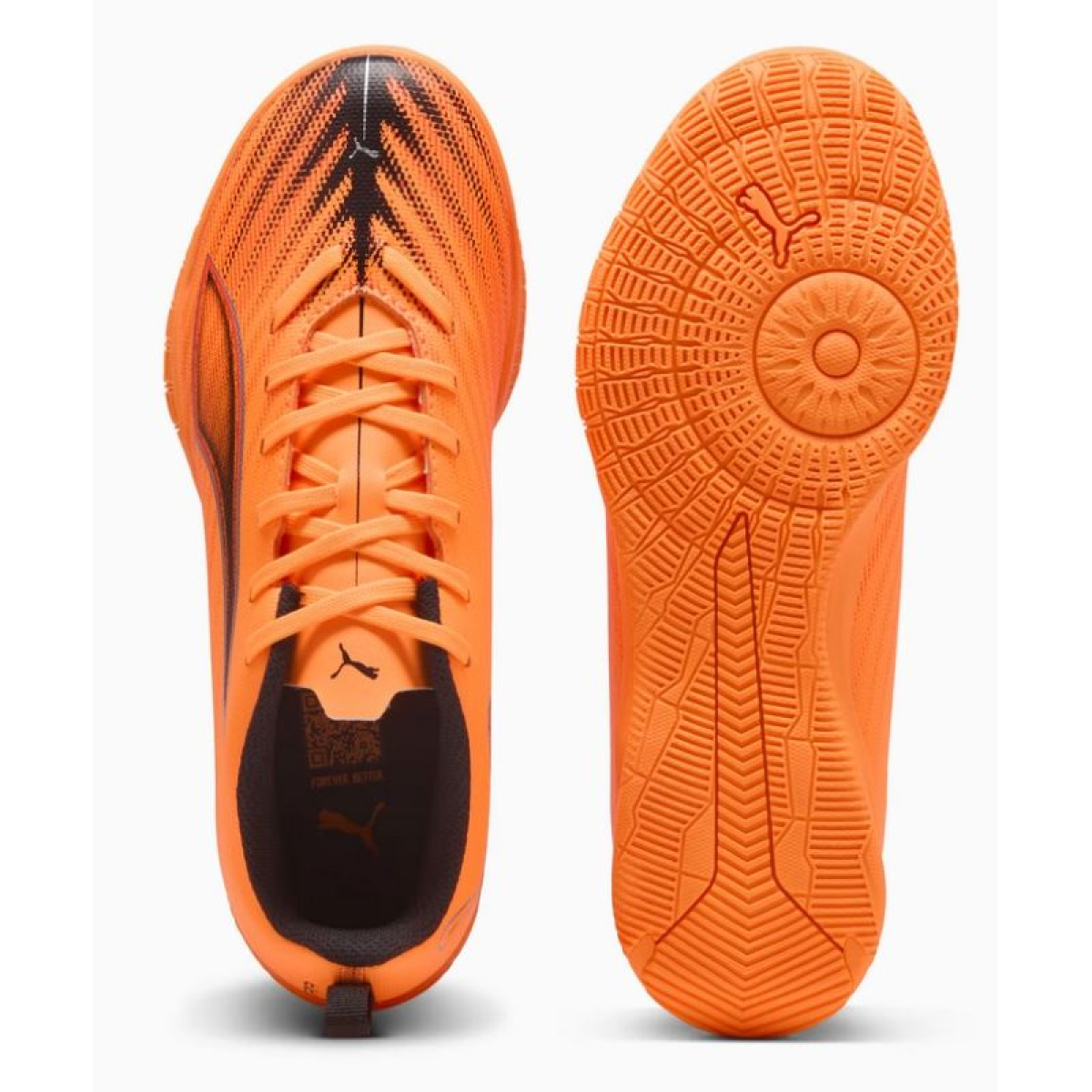 Puma Ultra indoor soccer shoes for kids offer a comfortable introduction to the era of speed. These recreational shoes are part of the premiere collection, The Hot Pursuit Pack.