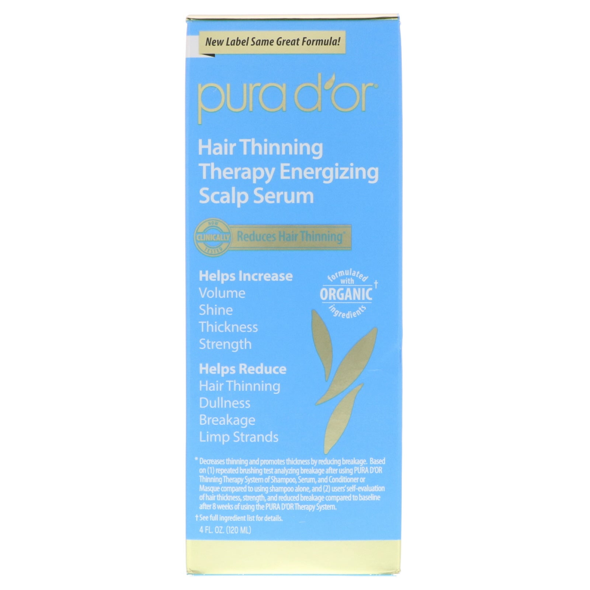 Pure Performance Clinically Tested Reduce Hair Thinning* Formulated with Organic Ingredients†No Sodium Lauryl Sulfate No Parabens No Phthalates No Artificial Colorants No Mineral Oil No Petrolatum No Common Allergens No Propylene Glycol No Formaldehyde No Metallic Aluminum No Triclosan No Toluene No Gluten Cruelty-Free Earth-Friendly Vegan Made with Renewable Energy For Men and Women Hypo-Allergenic Color Safe Helps Increase: Volume Shine Thickness Strength Help Reduce: Hair Thinning Dullness Breakage Limp Strands Hair Loss Prevention Therapy Energizing Scalp Serum Our Energizing Scalp Serum is engineered to help accelerate the results of our Hair Thinning Therapy System. Our exclusive naturally powered formula nourishes the scalp while our proprietary botanical blend helps strengthen strands and boost volume while helping reduce scalp irritation, hair thinning* due to breakage, limp strands and dryness. Each and every PURA D'OR product is crafted with care and stays true to Earth Friendly Principles. All of our formulas are proudly Cruelty Free, Vegan, and made with renewable energy in our solar powered facilities. Aloe Vera based formula for superior-hydration and nourishment. *Decreases thinning and promotes thickness by reducing breakage. Based on (1) repeated brushing test analyzing breakage after using PURA D'OR Thinning Therapy System of Shampoo, Serum, and Conditioner or Masque compared to using shampoo alone, and (2) users' self-evaluation of hair thickness, strength, and reduced breakage compared to baseline after 8 weeks of using the PURA D'OR Therapy System. †See full ingredient list for details.