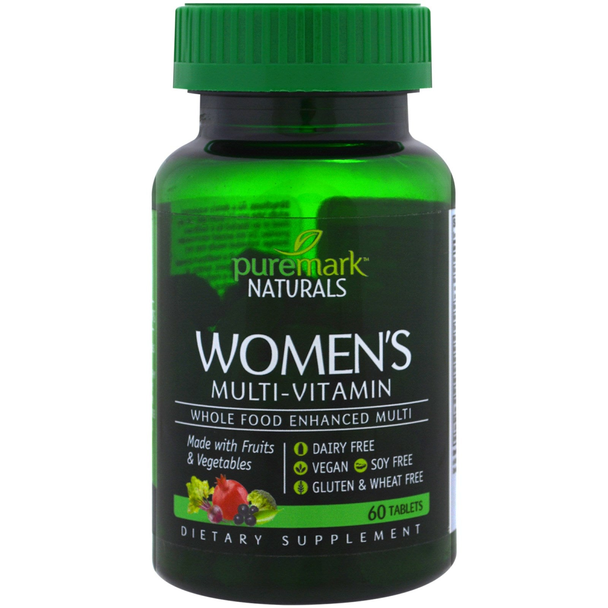 Whole Food Enhanced Multi Made with Fruits & Vegetables Dairy Free Vegan Soy Free Gluten & Wheat Free Dietary Supplement Quality ingredients: Puremark Naturals is designed to complement a healthy diet by using only the purest, quality ingredients for those seeking a cleaner more natural lifestyle.