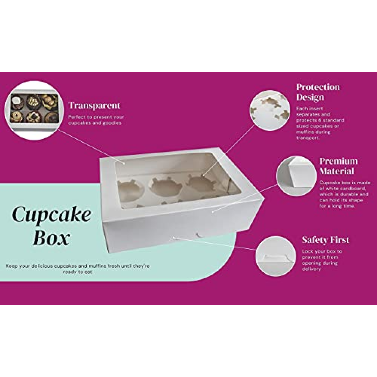 PYXISTIFY Cupcake Boxes | Built-in POPUP Boxes | 6 Holes Insert Cake Boxes | Each Hole Firmly Holds in Upright Position Cupcake