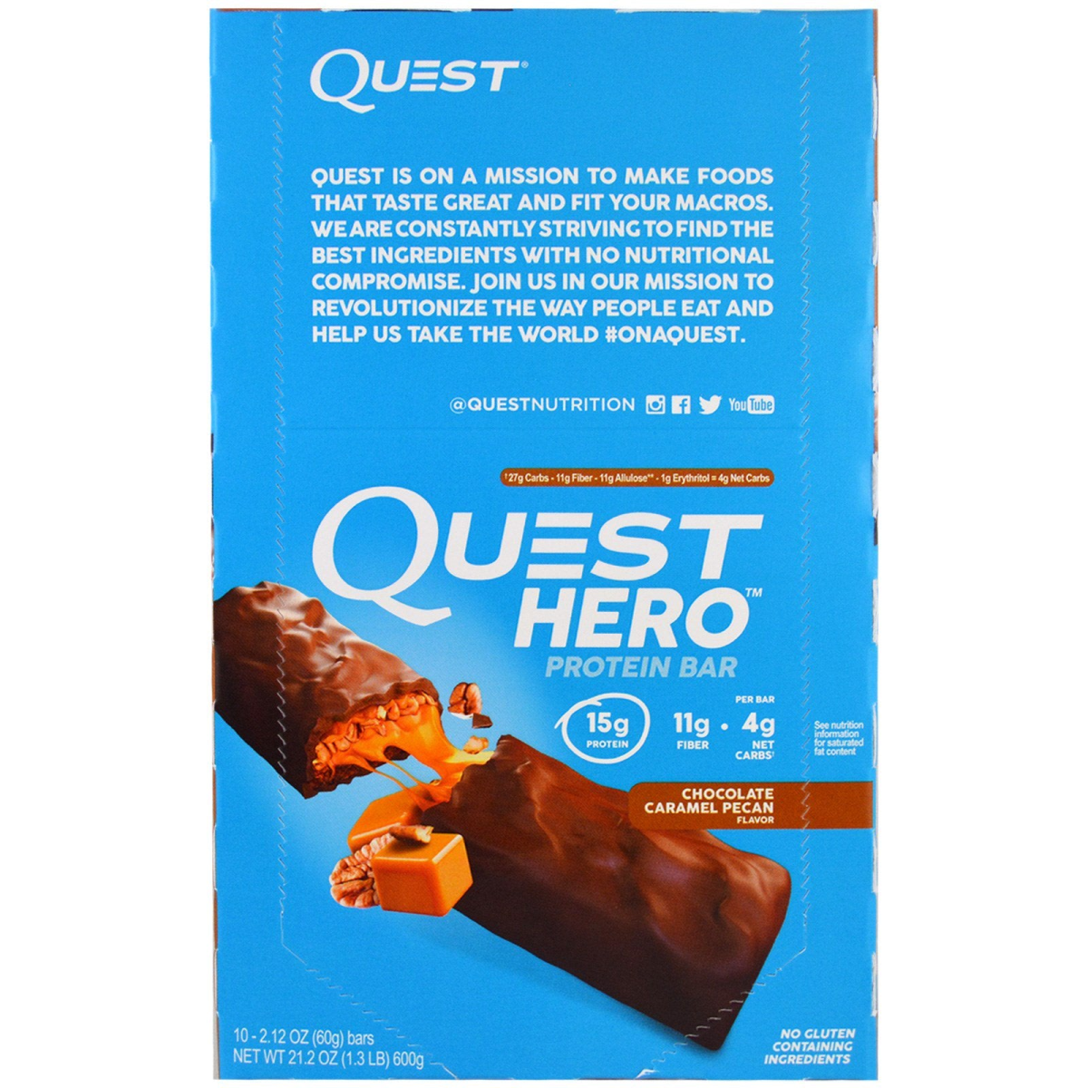 Quest Nutrition Hero Protein Bar Chocolate Caramel Pecan 10 Bars 2.12 oz (60 g) Each