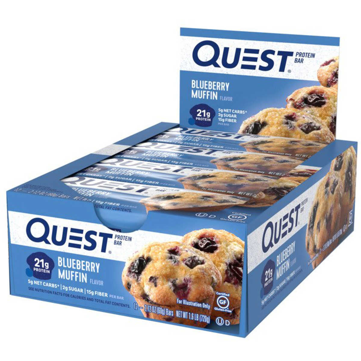 Quest Nutrition QuestBar Protein Bar Blueberry Muffin 12 Bars 2.1 oz (60 g) Each
