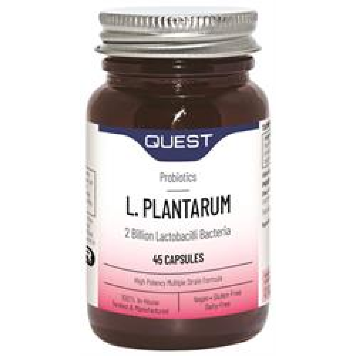 Provides the probiotic bacteria, Lactobacillus plantarum 299v, specialised strain for IBS (Prev. Lp299v) Quest probiotic products are manufactured 100% in-house from proprietary probiotic master cultures with proven stability and survivability in the GI tract. Quest L. Plantarum provides 2 billion lactobacillus Plantarum bacteria per capsule, lyophilised and encapsulated with guaranteed potency until the end of shelf life.